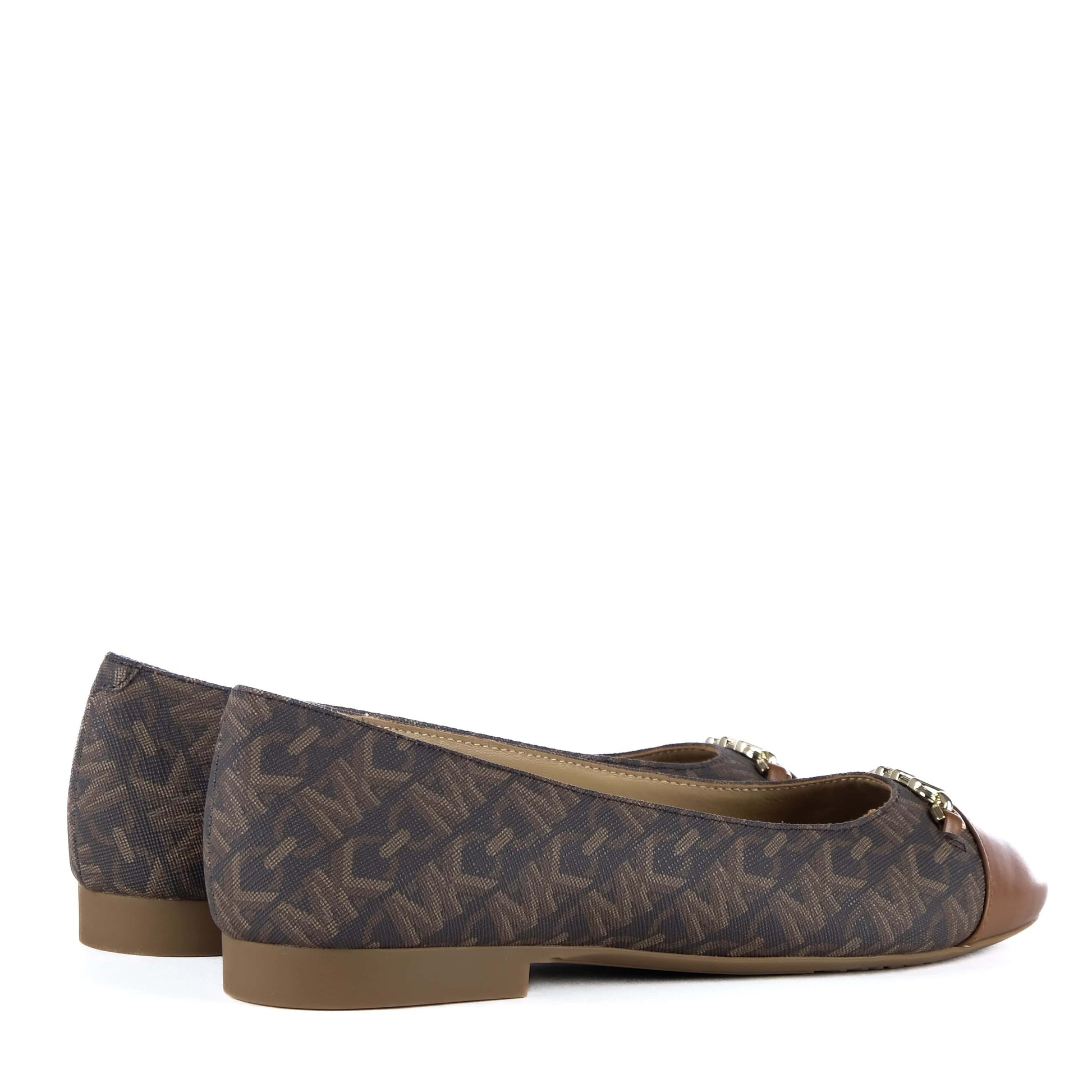 As sabrinas Michael Kors Monogram são a escolha perfeita para quem busca conforto sem abrir mão da sofisticação. Com o icônico padrão monograma da marca e detalhes em couro castanho, estas sabrinas oferecem um design elegante e moderno. O detalhe metálico dourado com o logotipo MK adiciona um toque de luxo discreto, tornando-as ideais para ocasiões casuais ou profissionais.