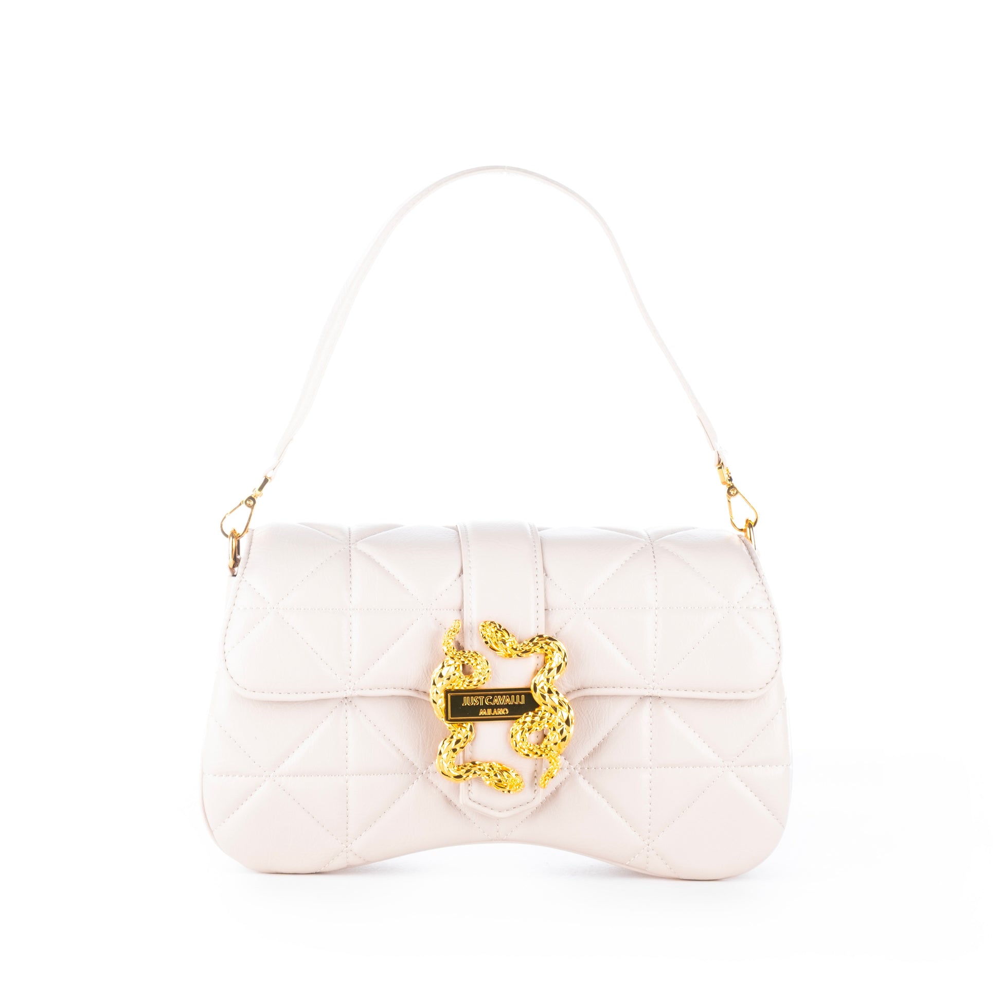 Elegante bolsa Just Cavalli, perfeita para ocasiões especiais. Com design acolchoado, alça ajustável e imponente adorno dourado de serpente, oferece sofisticação e estilo. Material de alta qualidade, durável e espaçosa