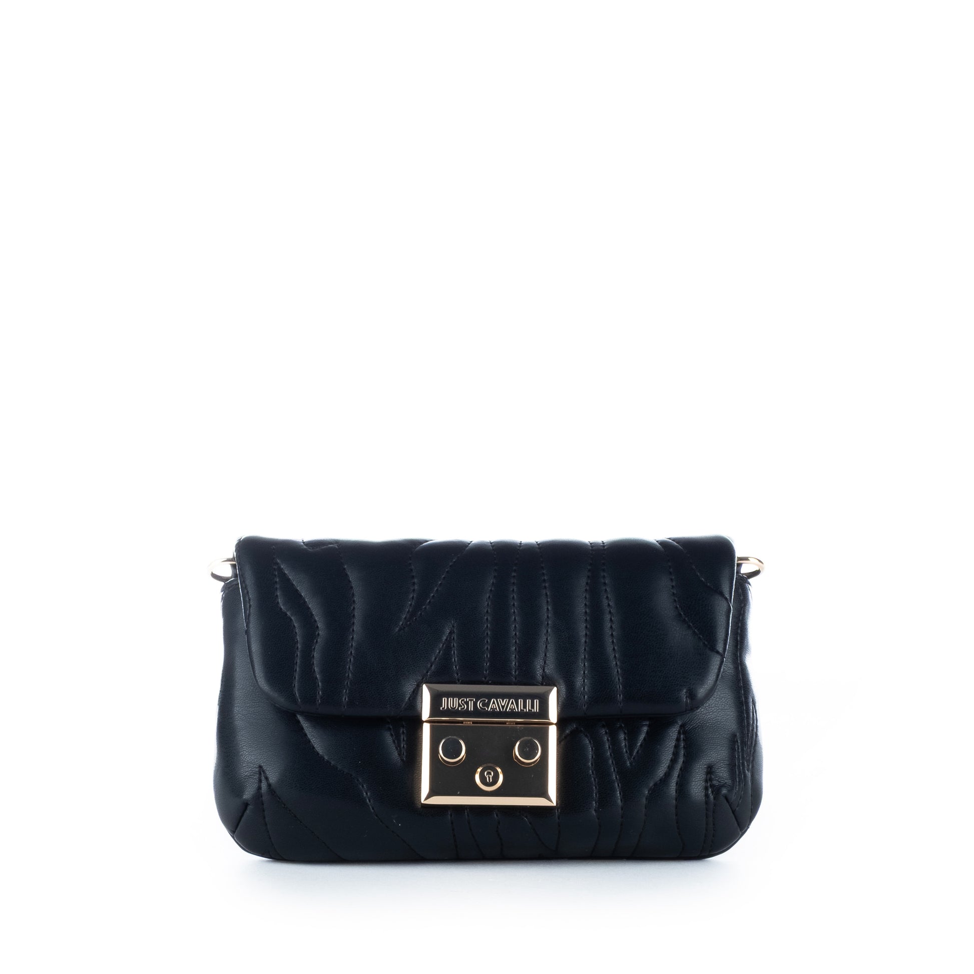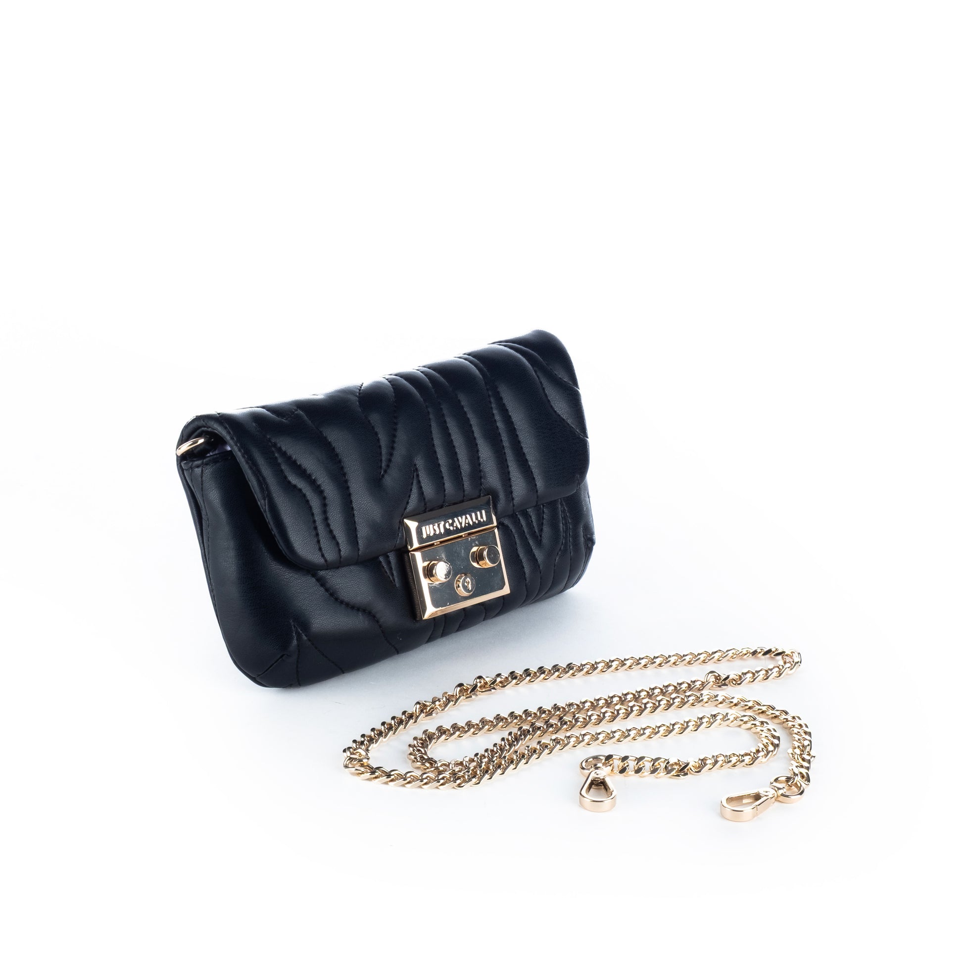 Bolsa Tiracolo Clutch Just Cavalli Preta com Fecho Dourado