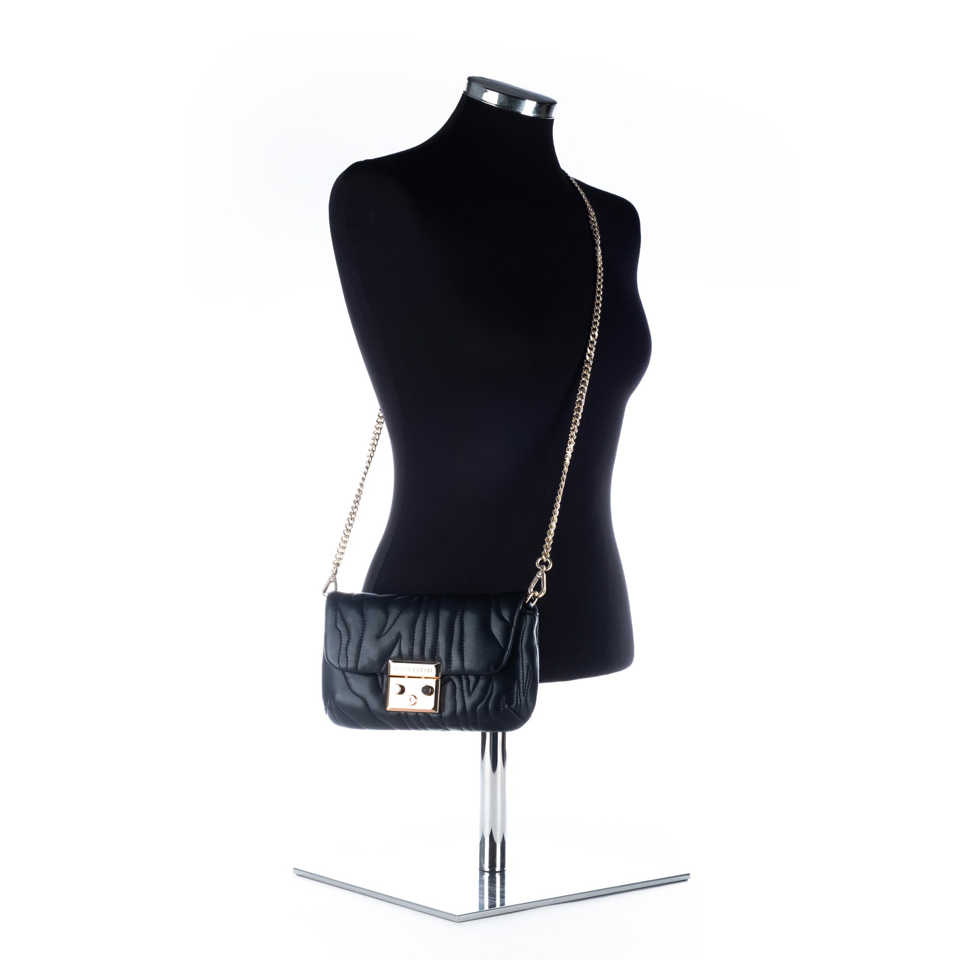 Descobre a elegância da Bolsa Just Cavalli, perfeita para qualquer ocasião. Design moderno em couro preto com detalhes em dourado, oferece estilo e praticidade. Ideal para eventos formais e uso diário, combina com qualquer look, garantindo sofisticação e funcionalidade