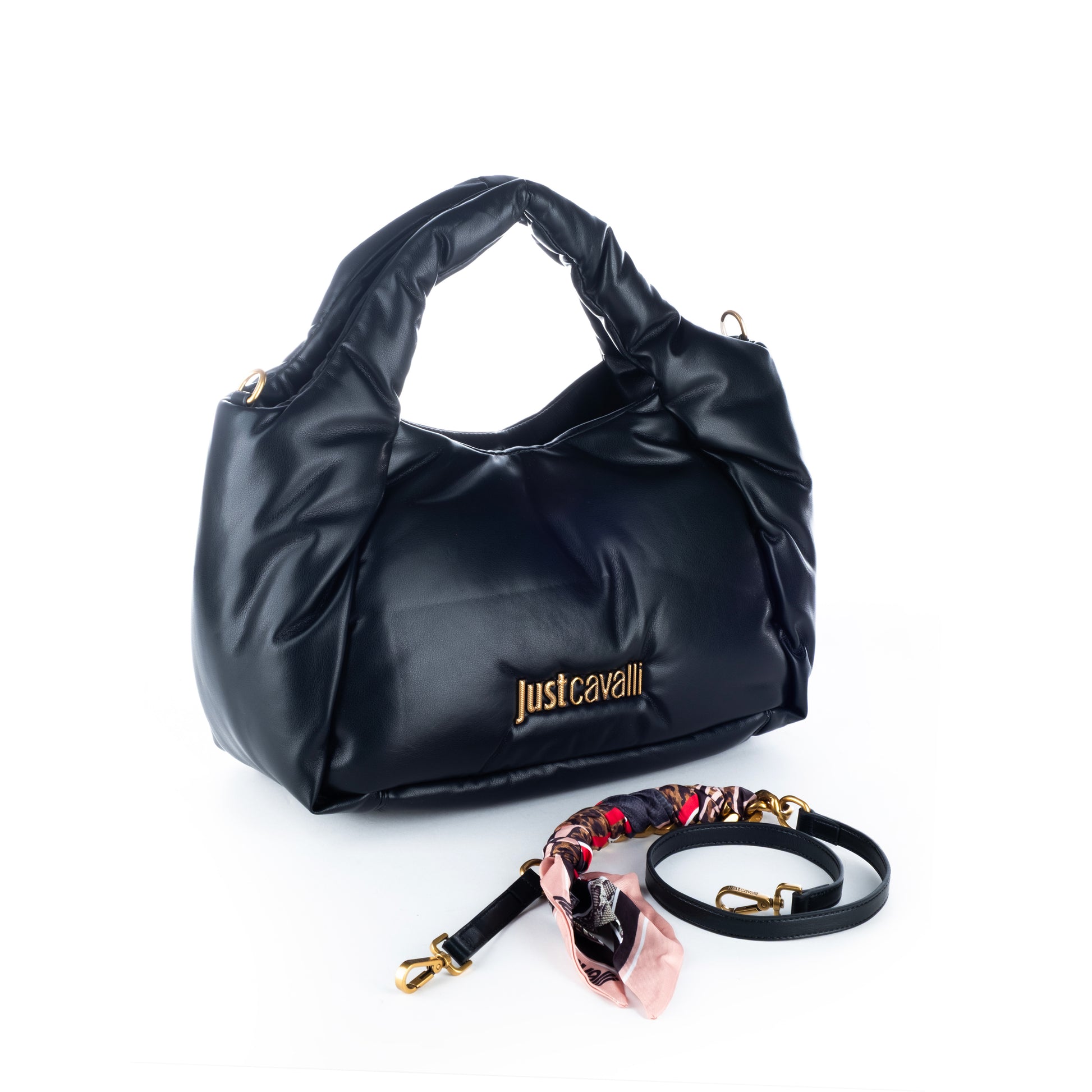 Bolsa saco de ombro Just Cavalli Preta com Detalhes Luxuosos