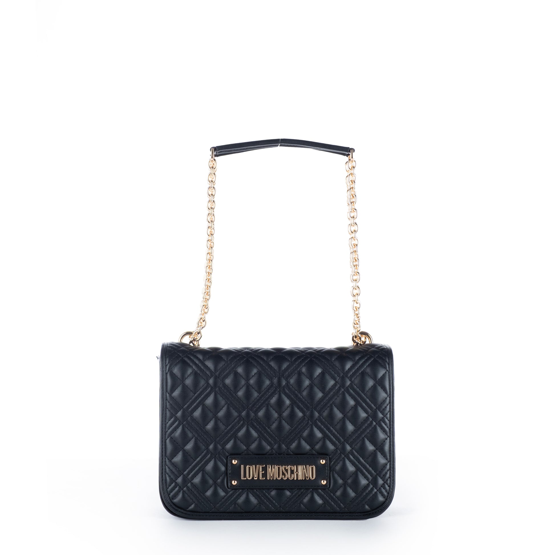 A Bolsa Love Moschino é a combinação perfeita de elegância e modernidade. Apresenta design acolchoado em preto com alças de corrente dourada, detalhes em metal e fecho magnético. Ideal para eventos casuais ou formais, é feita de materiais de alta qualidade que garantem durabilidade e estilo