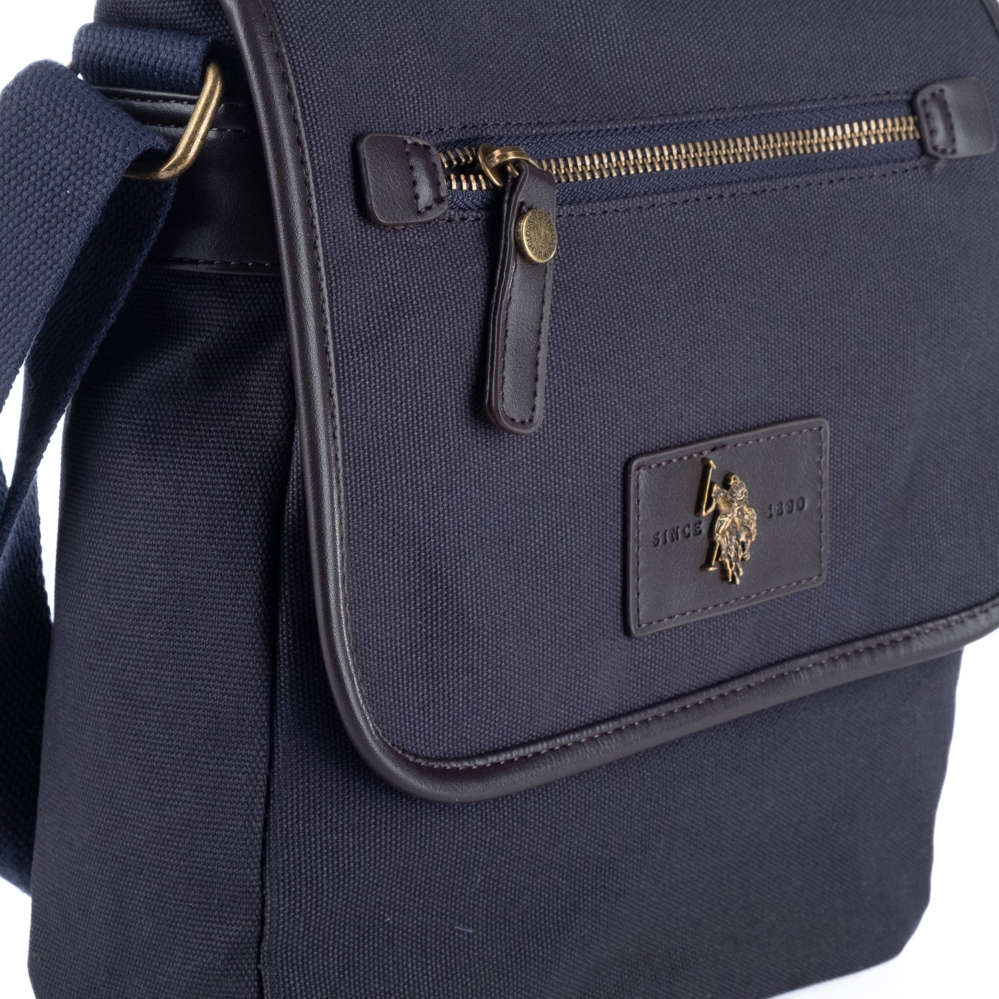 Bolsa Tiracolo de Homem US Polo em Tecido Azul Escuro com Aba e Bolso Frontal
