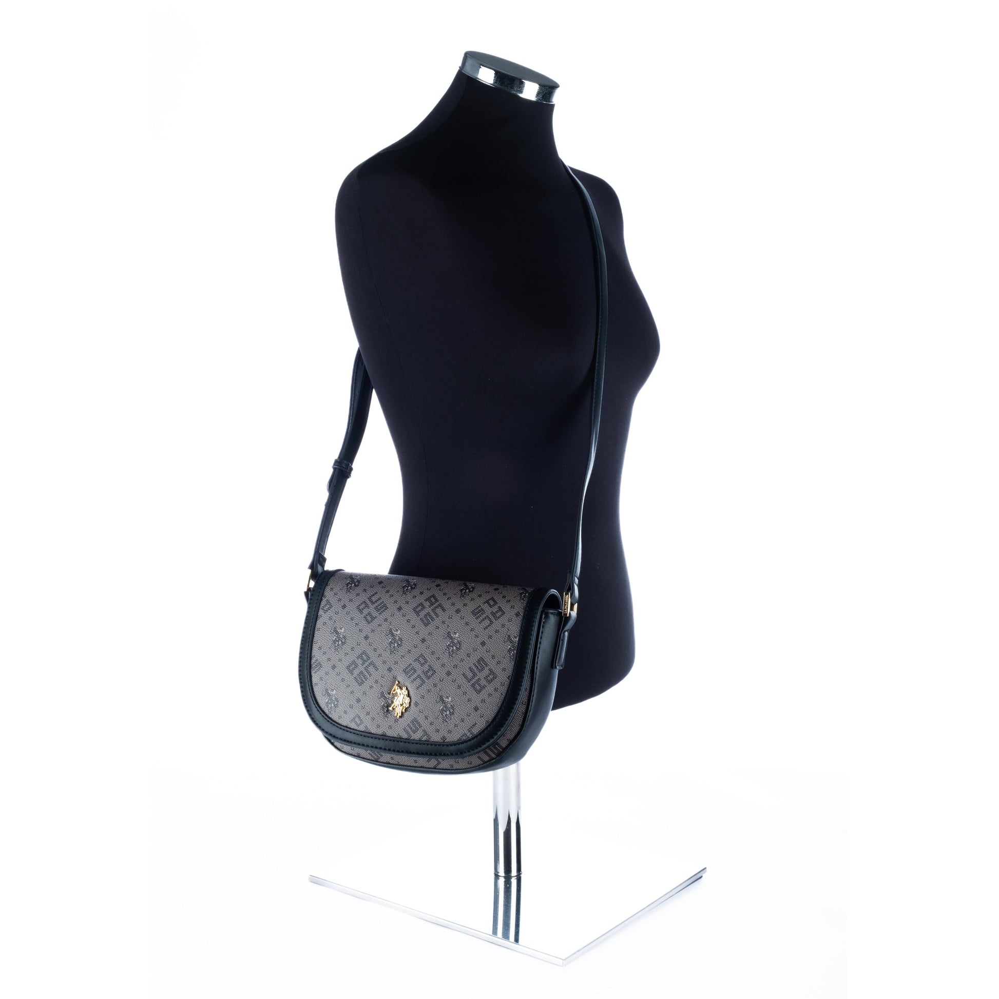 Bolsa Tiracolo Feminina US Polo Cinza com Detalhes Pretos