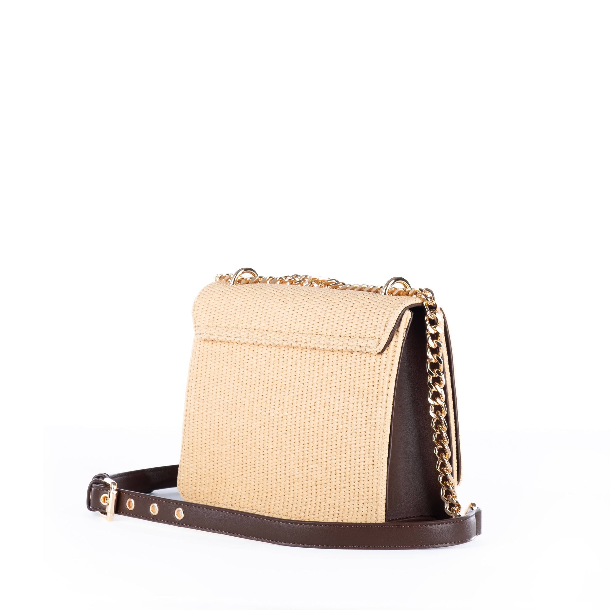 Bolsa Tiracolo Feminina Replay Bege com Detalhes Dourados