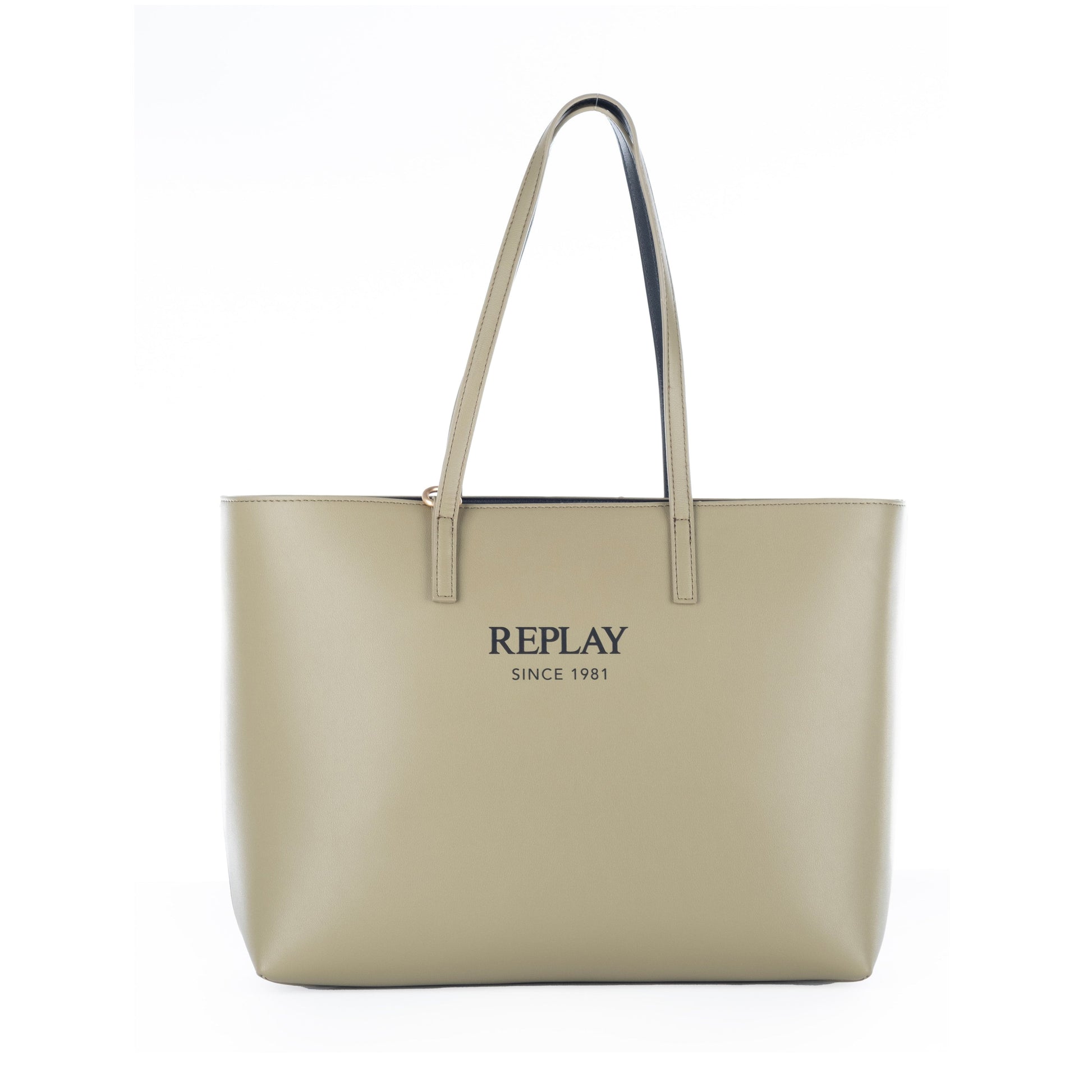 Bolsa Tote Feminina Replay Bege com Alças e Logo