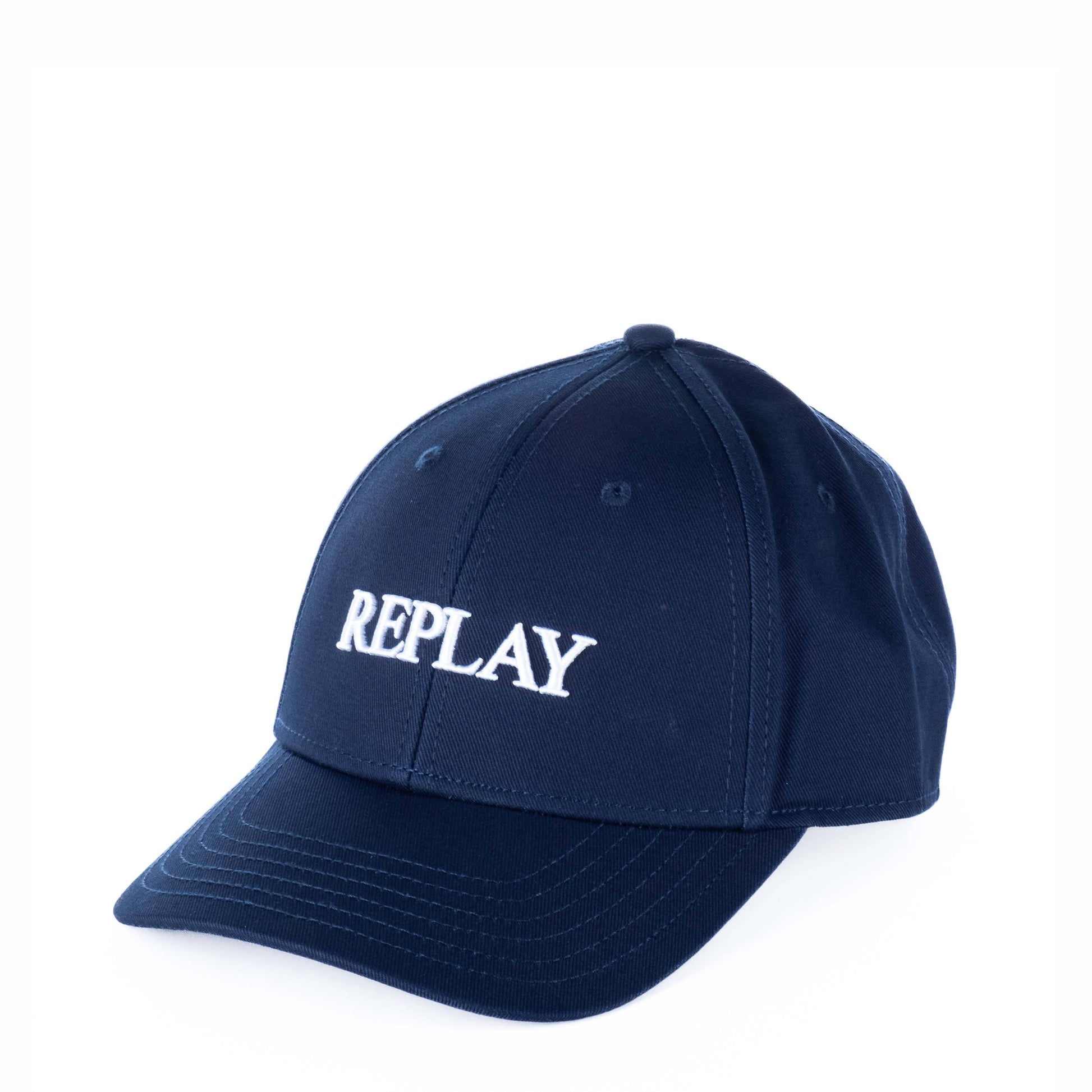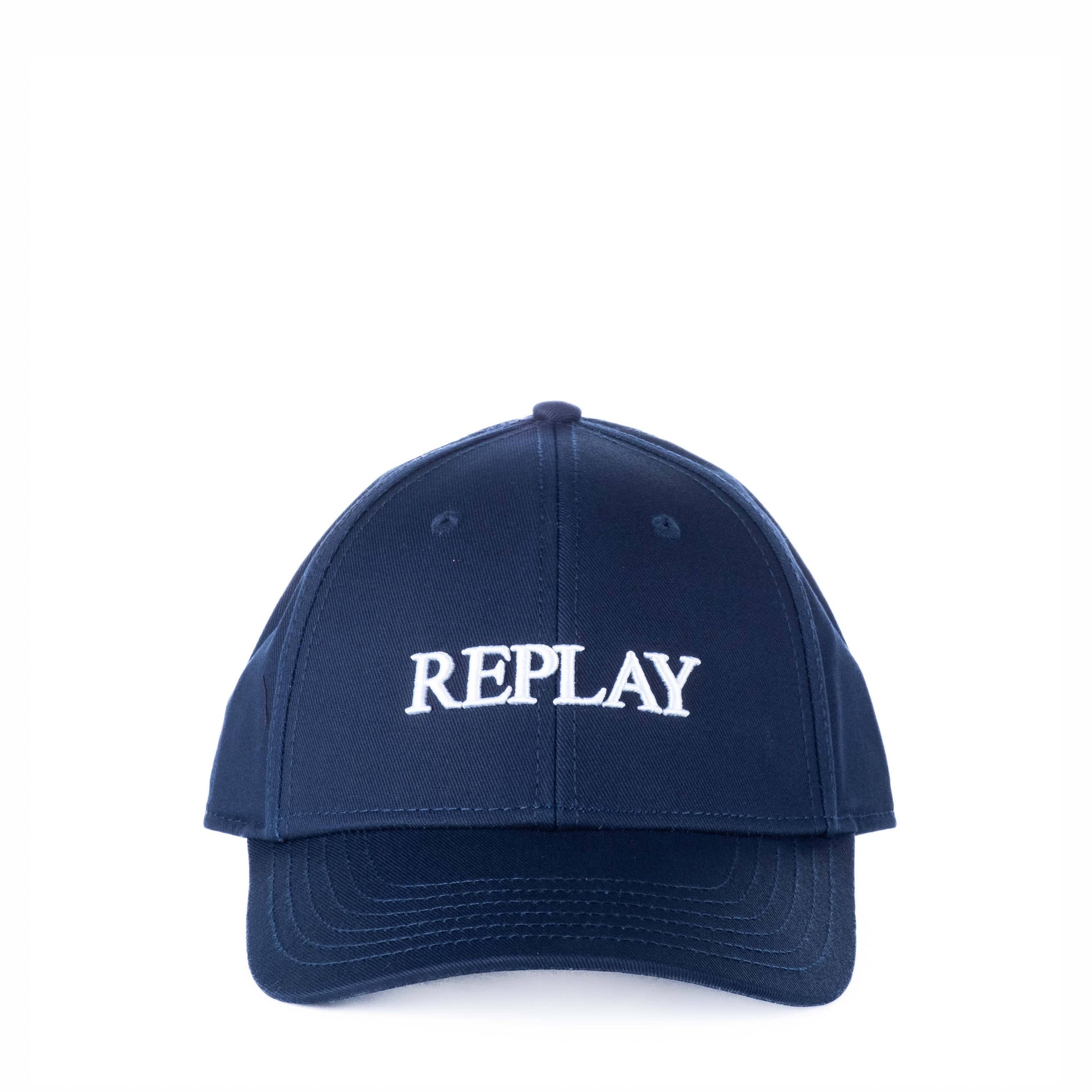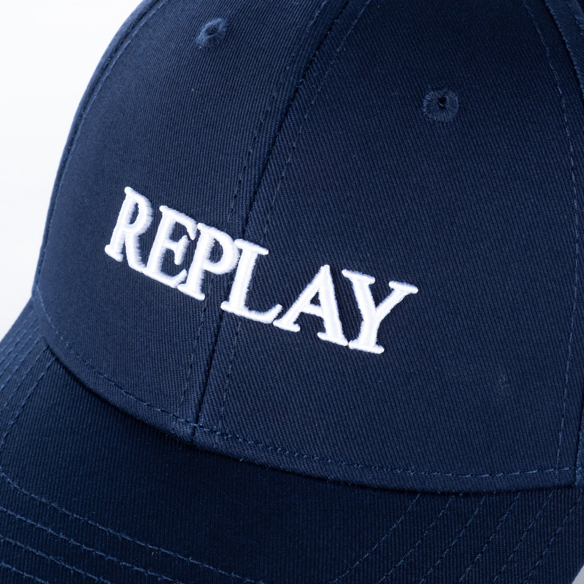 Boné Replay Azul Escuro com Logótipo Bordado em Branco
