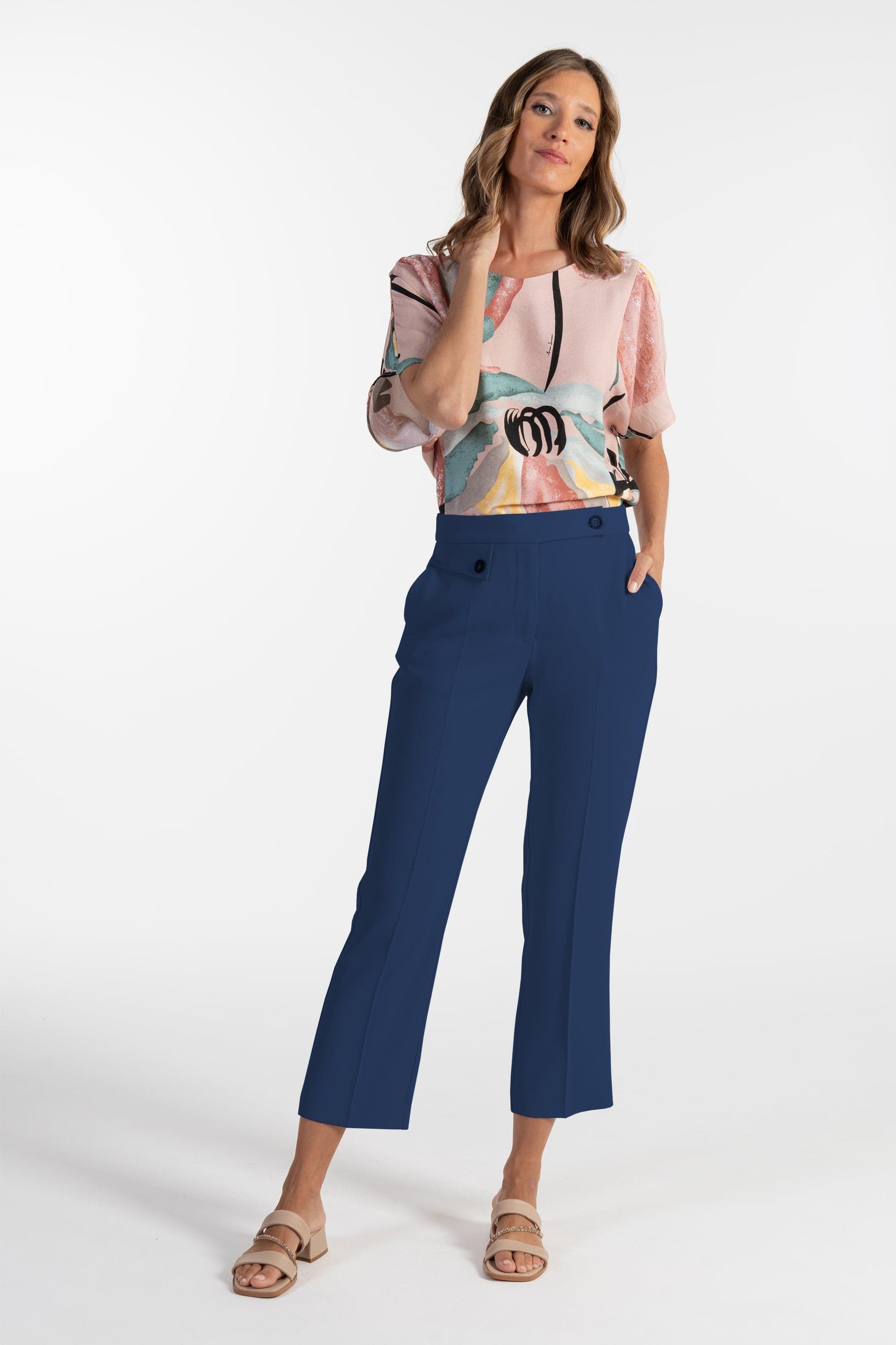Um toque de elegância moderna. As calças azuis ANA SOUSA apresentam um corte reto e cintura média, oferecendo um caimento impecável que valoriza a silhueta feminina. O tom azul profundo adiciona sofisticação e versatilidade, ideal tanto para o trabalho como para momentos de lazer. Combina-as com blusas estampadas ou camisas neutras da nova coleção ANA SOUSA.