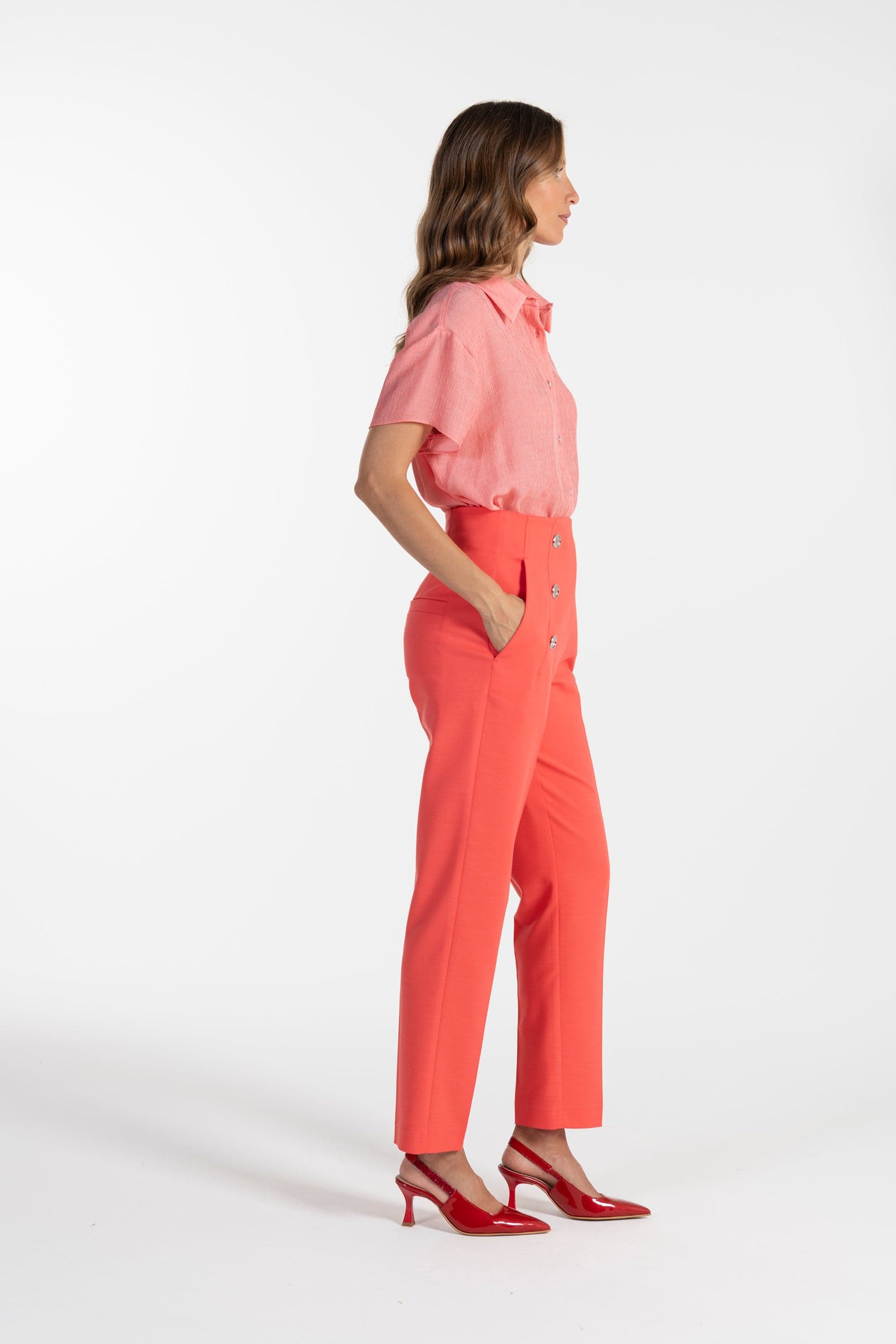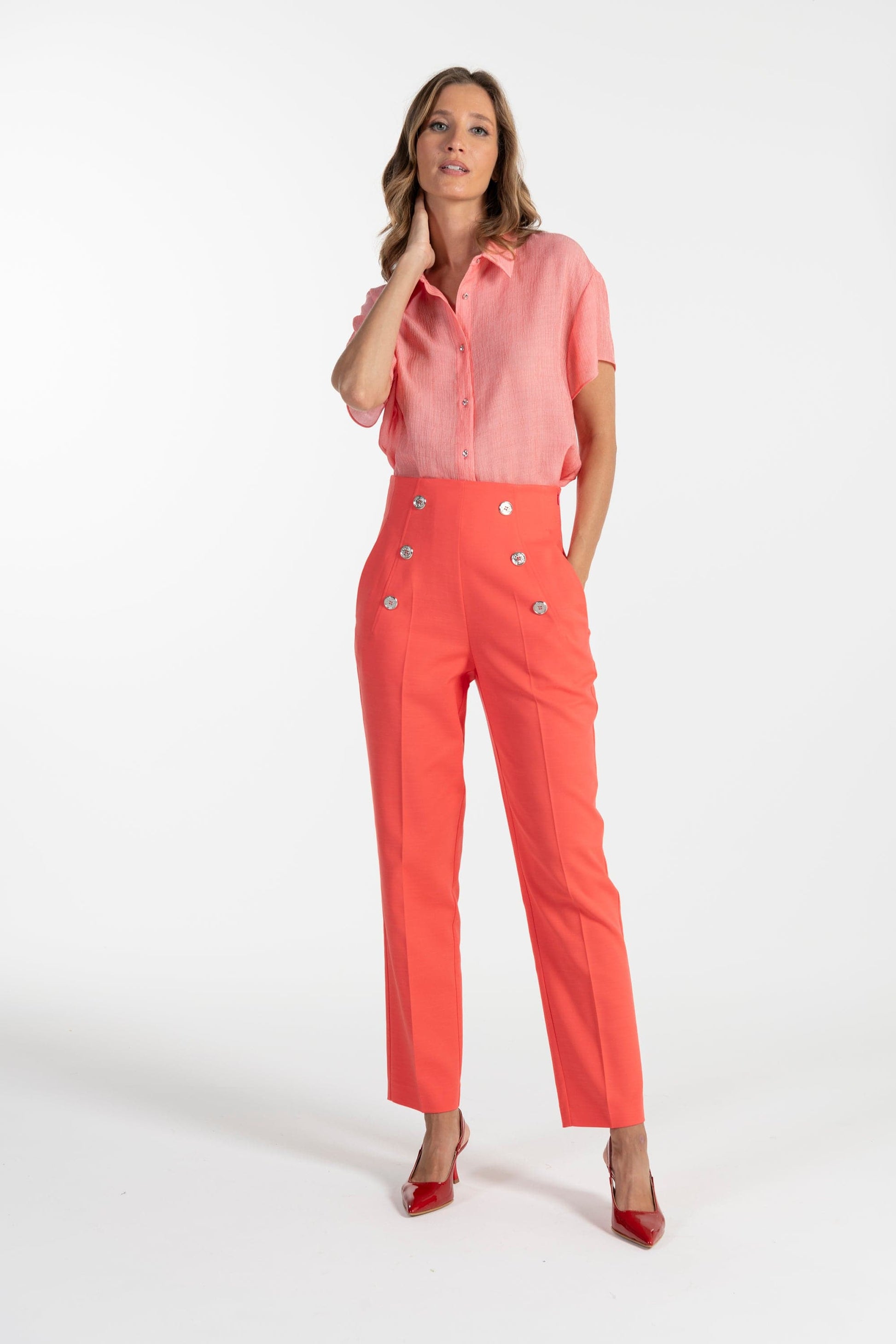 Calças Coral de Mulher ANA SOUSA com Botões Decorativos