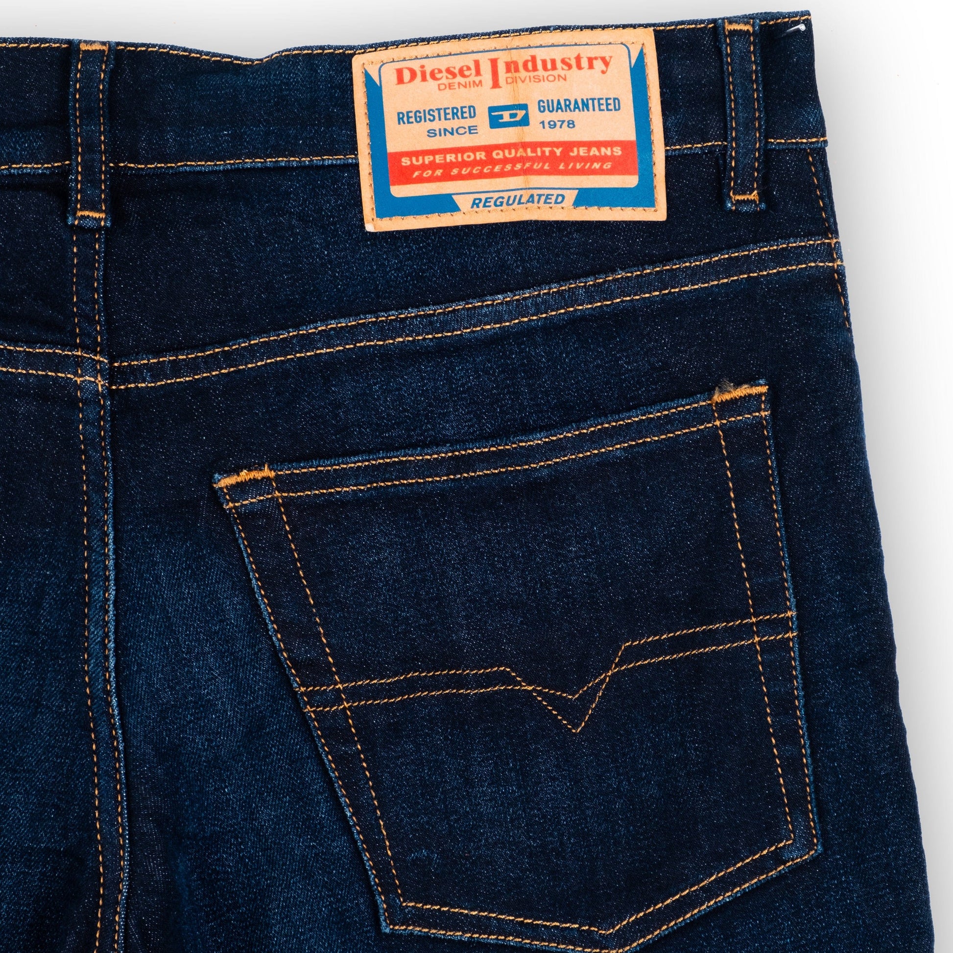 Urbano, versátil e sempre atual. Estas jeans da Diesel apresentam um corte slim que valoriza a silhueta masculina com conforto e estilo. Com lavagem escura e leve desbotado frontal, são ideais para looks casuais, de trabalho ou até mais arrumados. Um essencial moderno para qualquer guarda-roupa masculino. | - Marca: Diesel | - Cor: Azul denim escuro | - Corte: Slim fit | - Lavagem com efeito desgastado subtil | - Cinco bolsos funcionais | - Cintura média com fecho de botão e zíper | - Estilo casual e contemporâneo