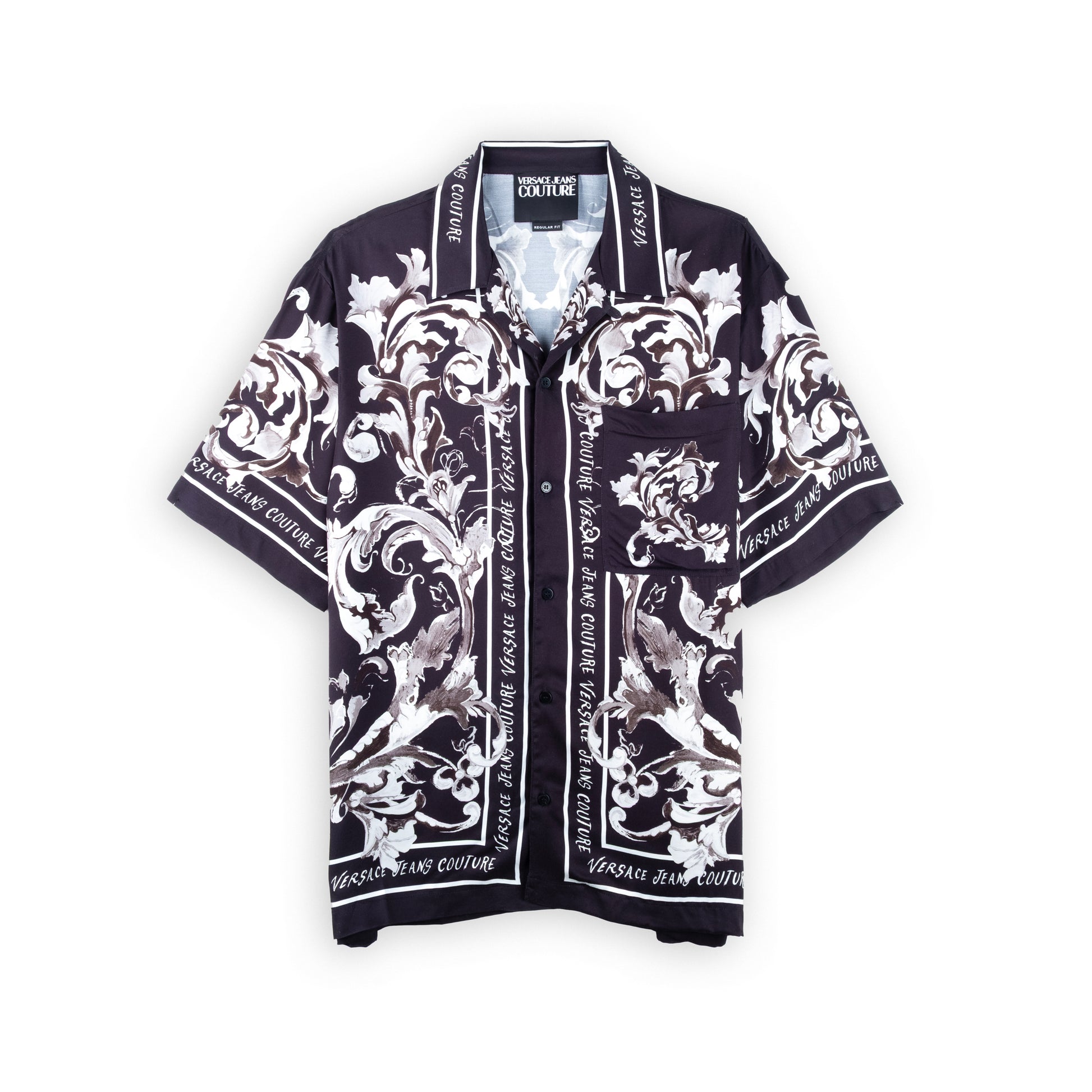 Camisa Homem Versace Jeans Couture Preta com Estampa Barroca Detalhada