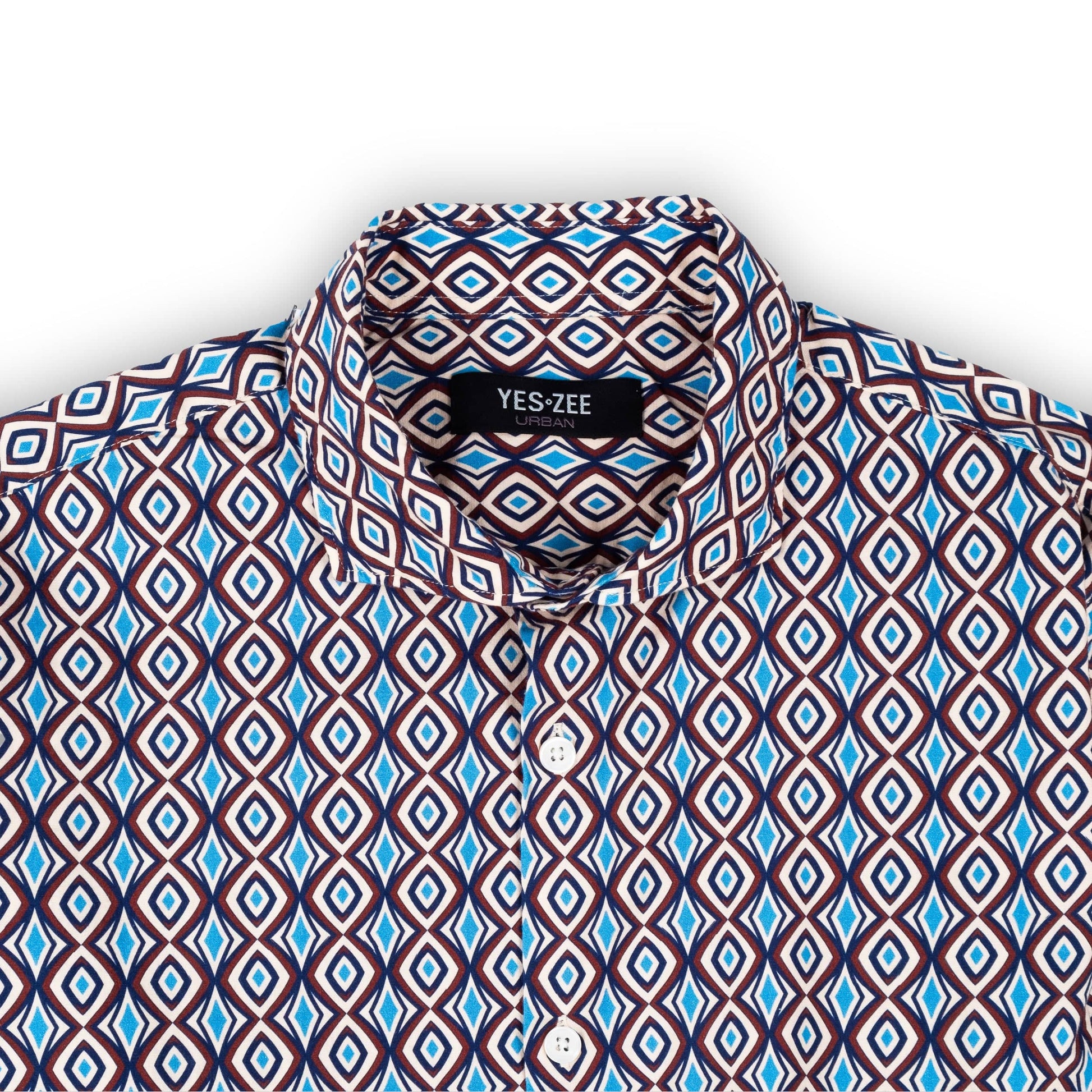 Camisa Homem Yes Zee Padrao Geometrico Castanho e Azul