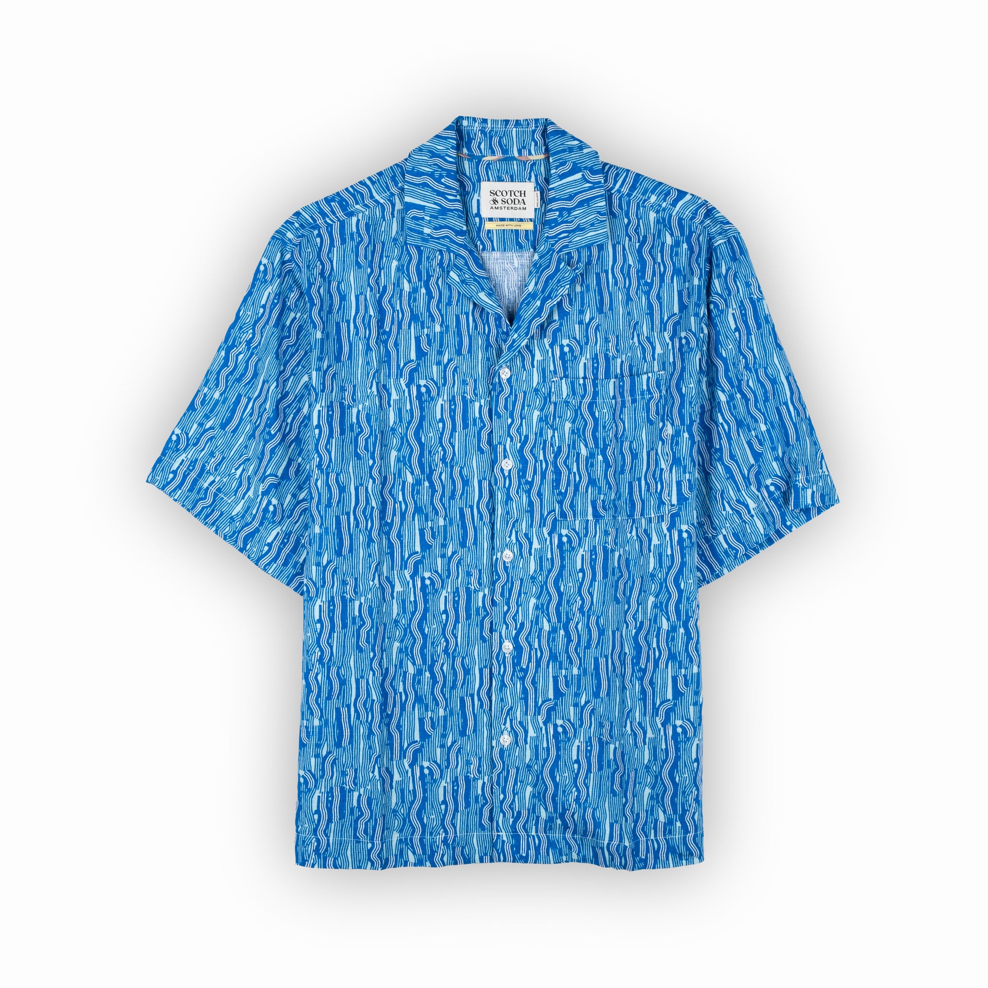 Camisa Masculina Scotch&Soda Azul Estampada com Manga Curta