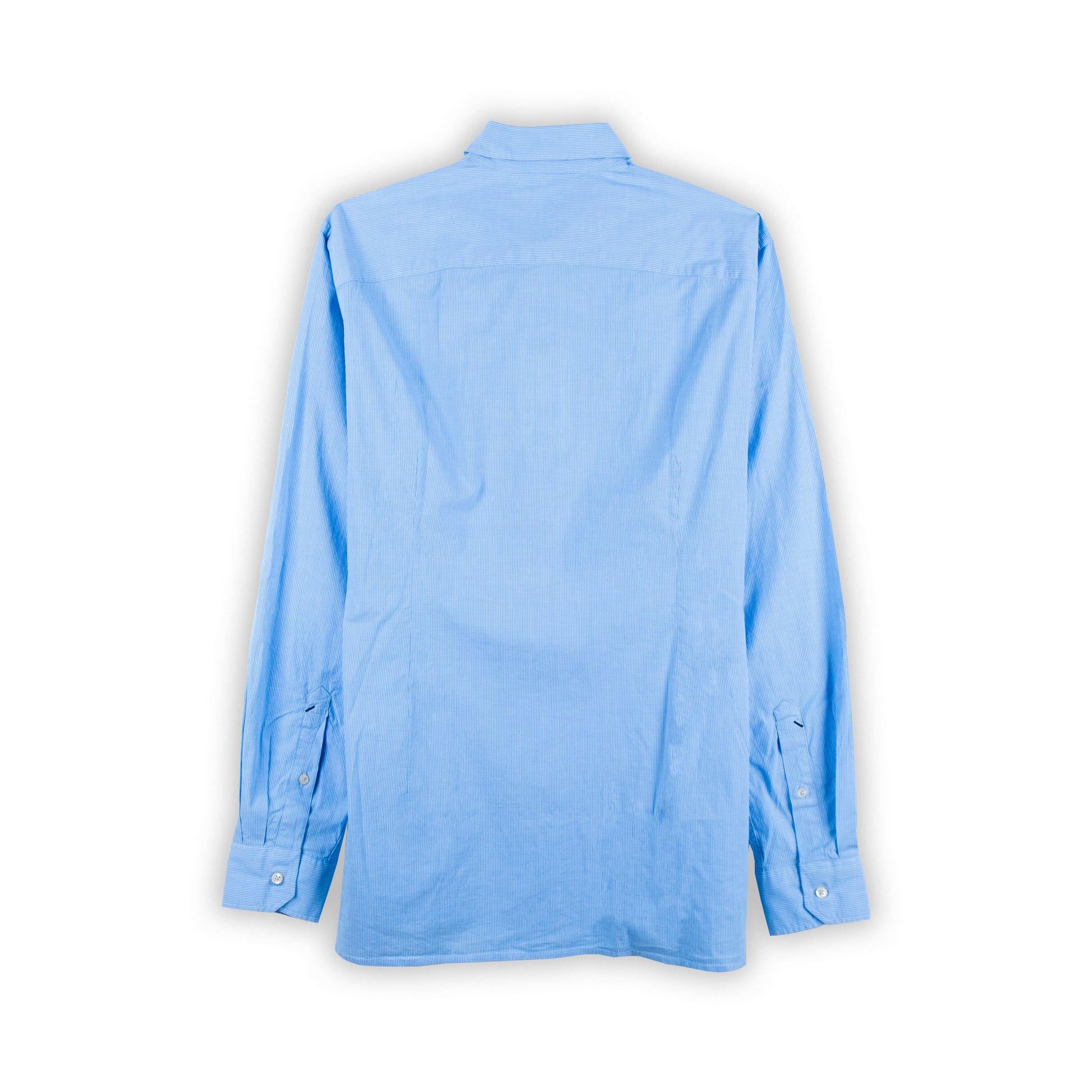 Camisa masculina de estilo casual, ideal para várias ocasiões. Apresenta um tom azul suave com logo bordado no peito. Feita de material de alta qualidade para conforto e durabilidade, com botões frontais e gola clássica, perfeita para um look elegante e descontraído