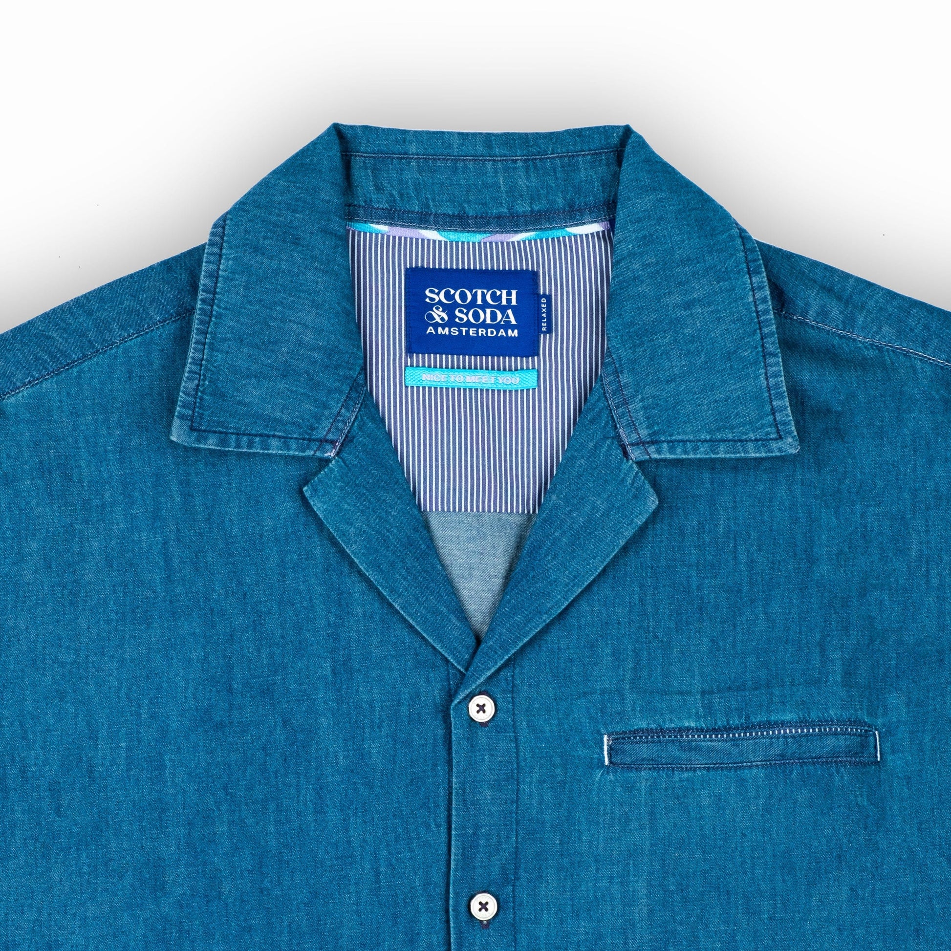 Camisa Masculina Scotch&Soda Azul Denim Manga Curta