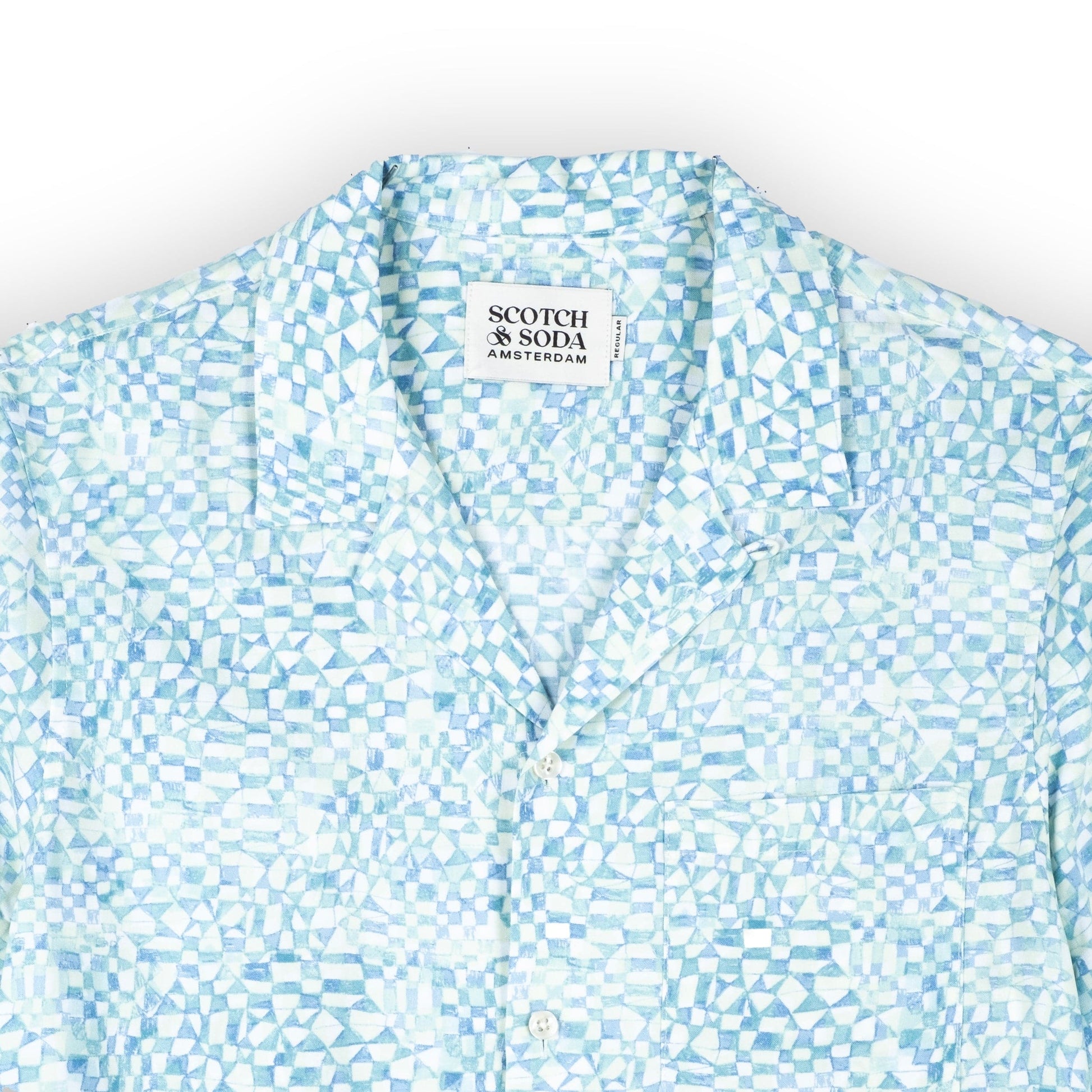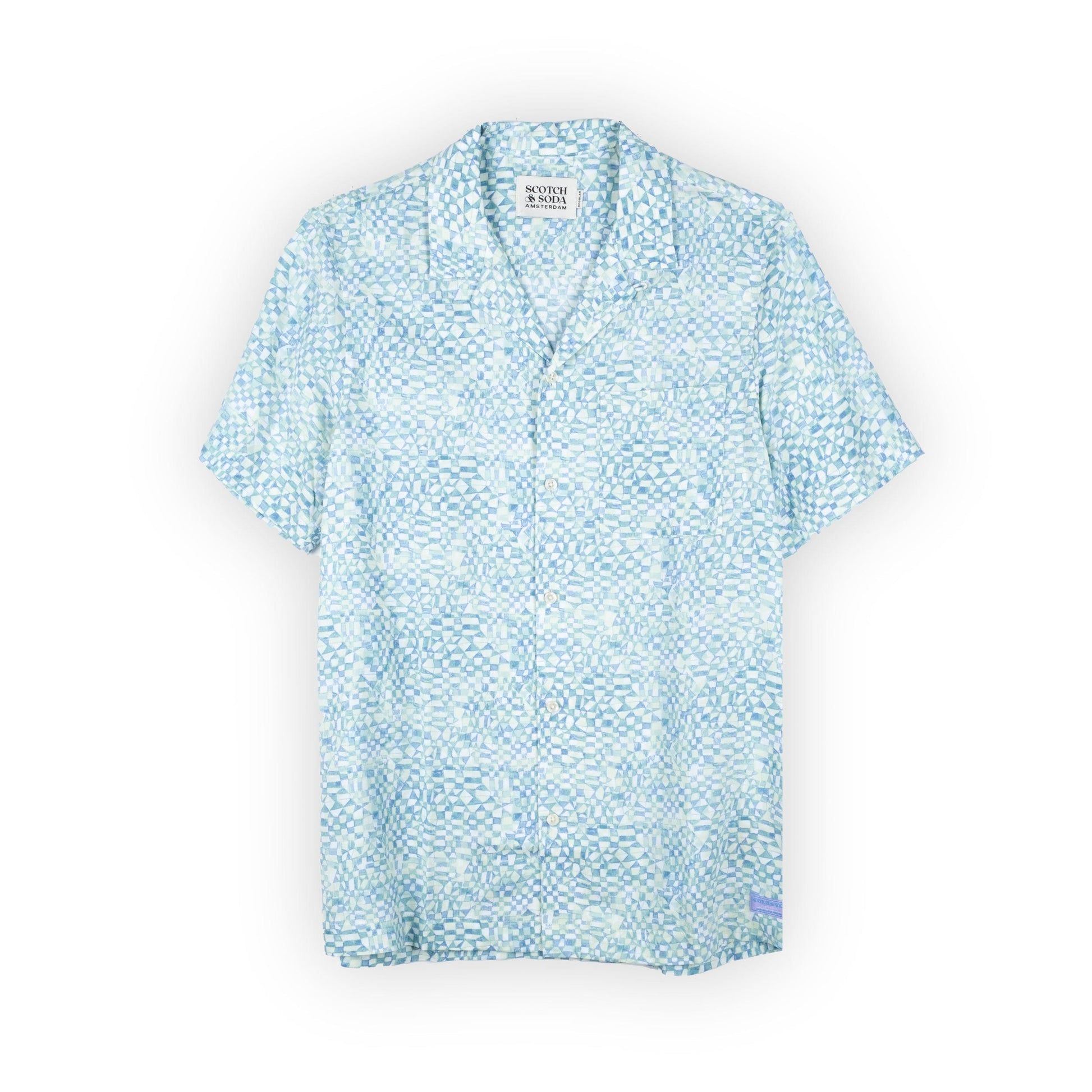 Camisa Masculina Scotch & Soda Azul Estampada de Manga Curta
