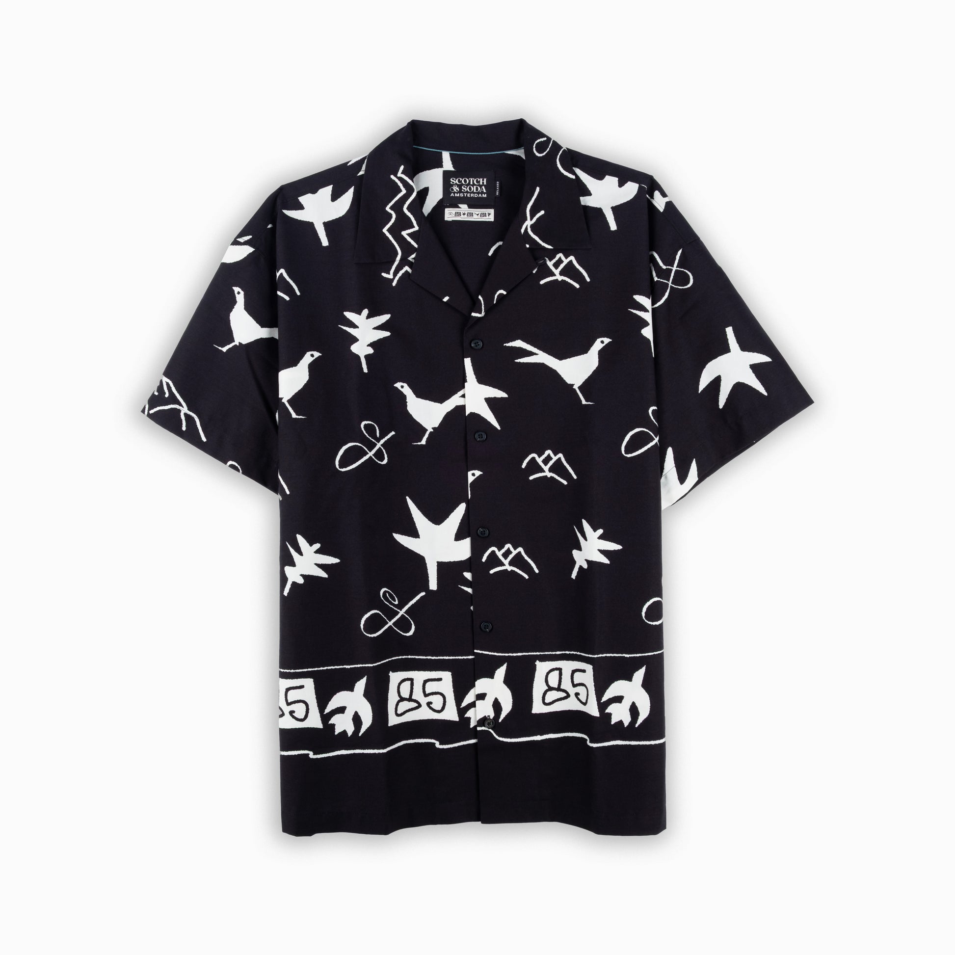Transforme seu guarda-roupa com a camisa masculina da Scotch & Soda. Apresenta um design preto sofisticado adornado com estampas brancas de pássaros, perfeita para ocasiões casuais ou estilos descontraídos. Confeccionada com materiais de alta qualidade para conforto e durabilidade