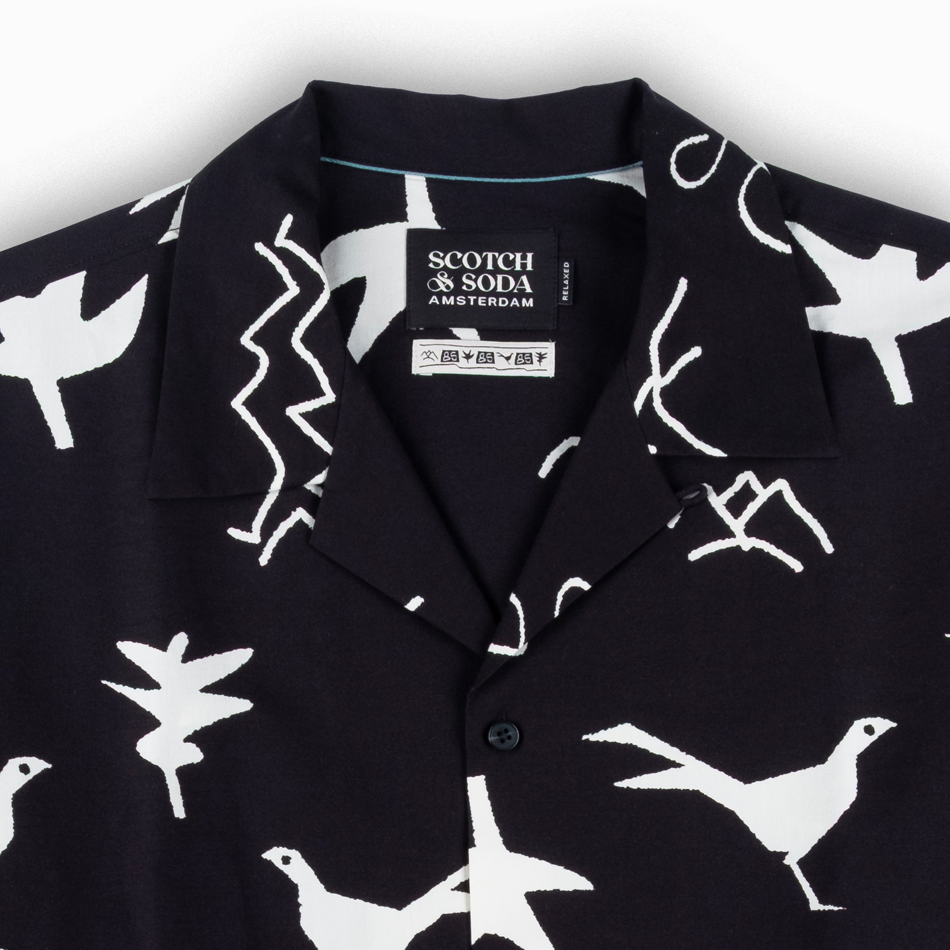 Camisa Homem Scotch & Soda Preta com Estampas de Pássaros