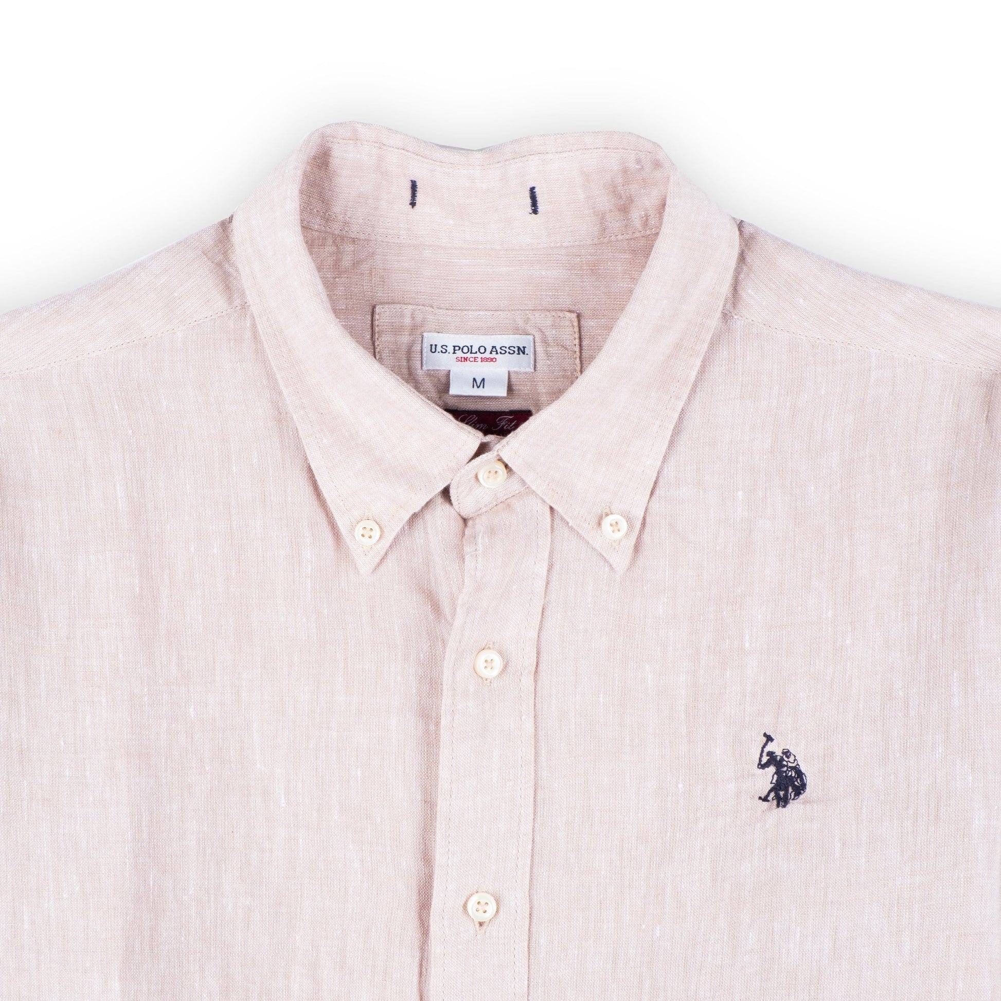 Esta camisa da US Polo traz sofisticação e conforto para o dia a dia. Ideal para ocasiões casuais, sua cor bege suave complementa qualquer guarda-roupa. Confeccionada com tecidos de alta qualidade, garante conforto e durabilidade. Seu design clássico é realçado pelo bordado discreto do logotipo da marca, botões frontais e colarinho tradicional, proporcionando um visual elegante e versátil