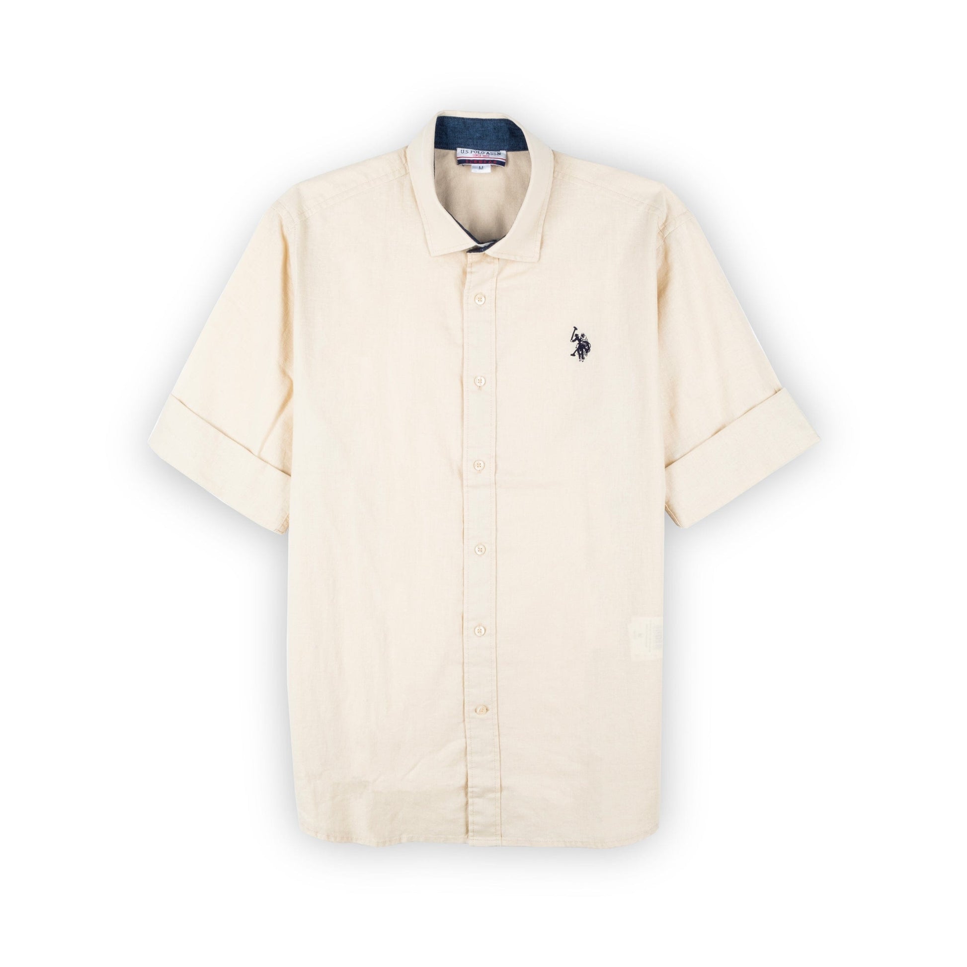 Esta camisa bege da US Polo é perfeita para ocasiões casuais e formais. Apresenta um design clássico com manga curta, fechamento por botões e logo bordado no peito. Confeccionada em material de alta qualidade, garante conforto e elegância em todos os momentos