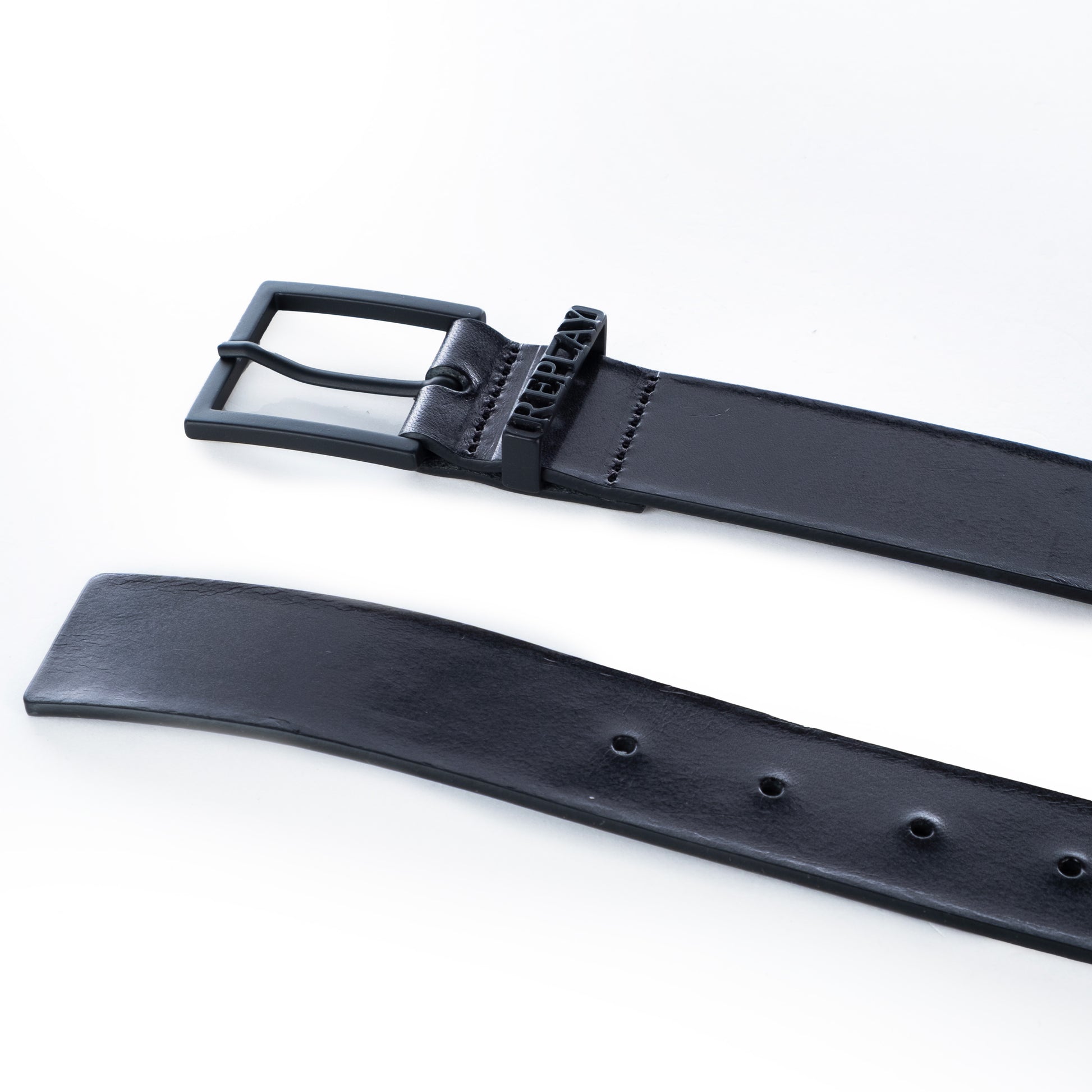 Cinto Homem de Couro Preto para Replay com Fivela Metálica