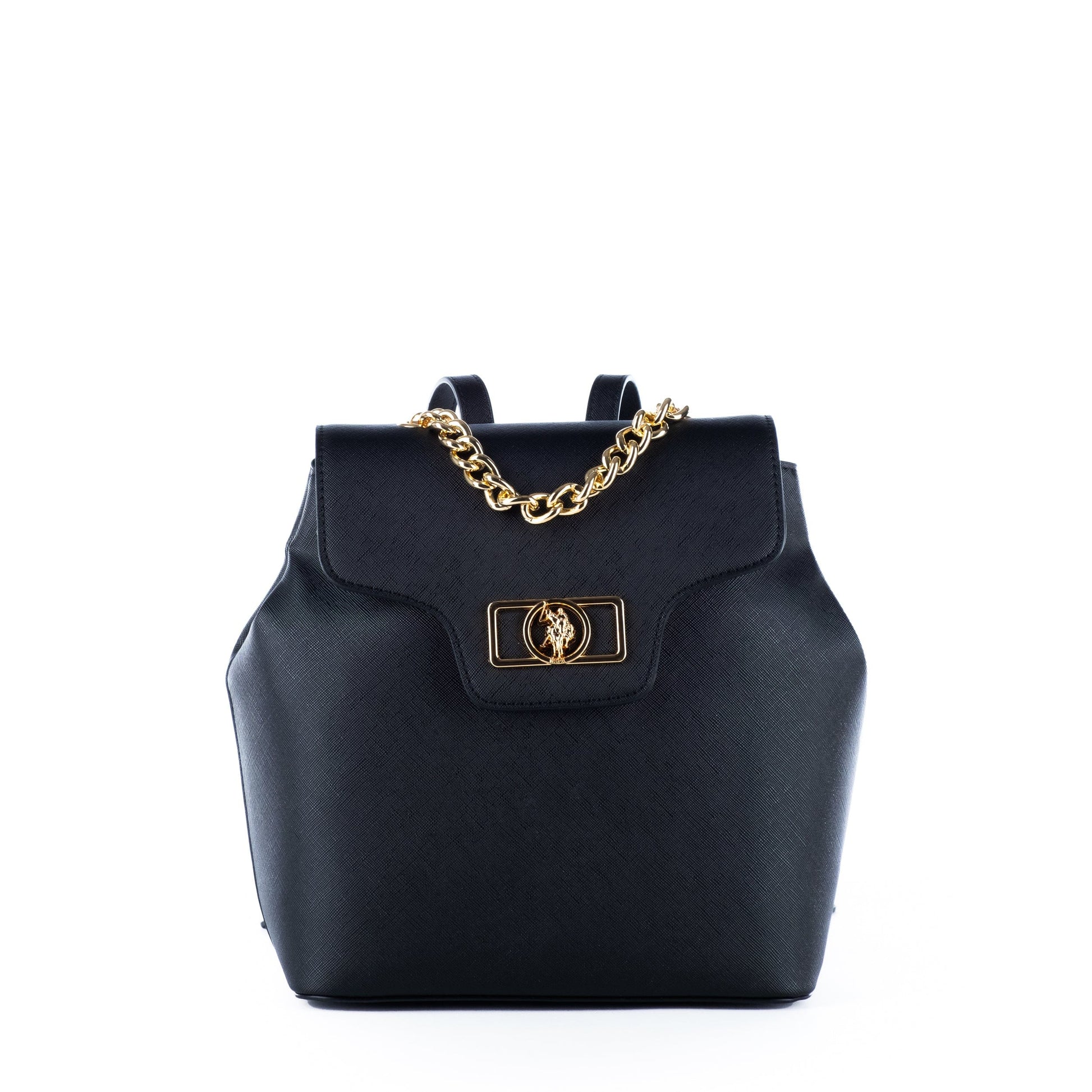 Mochila Mulher Us Polo Preta com Corrente Dourada