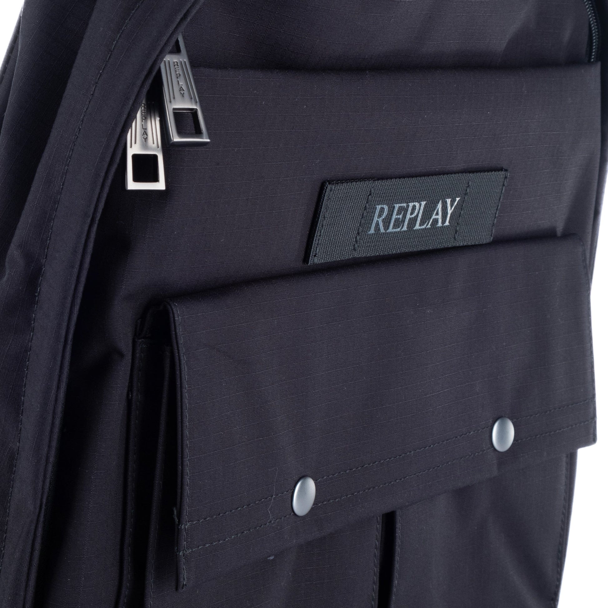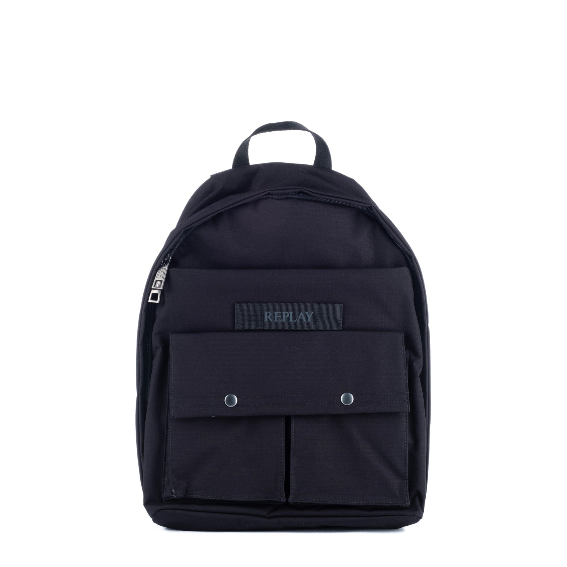 Estilo urbano com funcionalidade: esta mochila REPLAY preta combina design moderno com espaço para tudo o que precisas no teu dia a dia. Com bolsos frontais com botões de pressão, compartimento principal espaçoso e alça superior, é ideal para trabalho, estudo ou passeio.