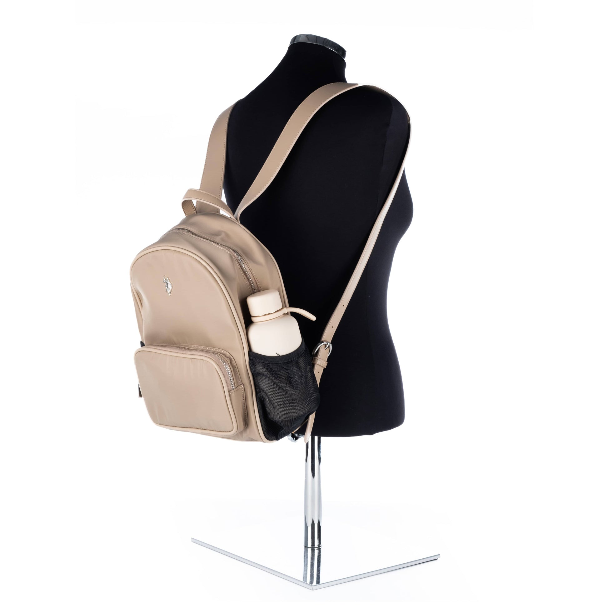 Mochila Unisexo US Polo Bege com Bolso Frontal e Lateral em Rede