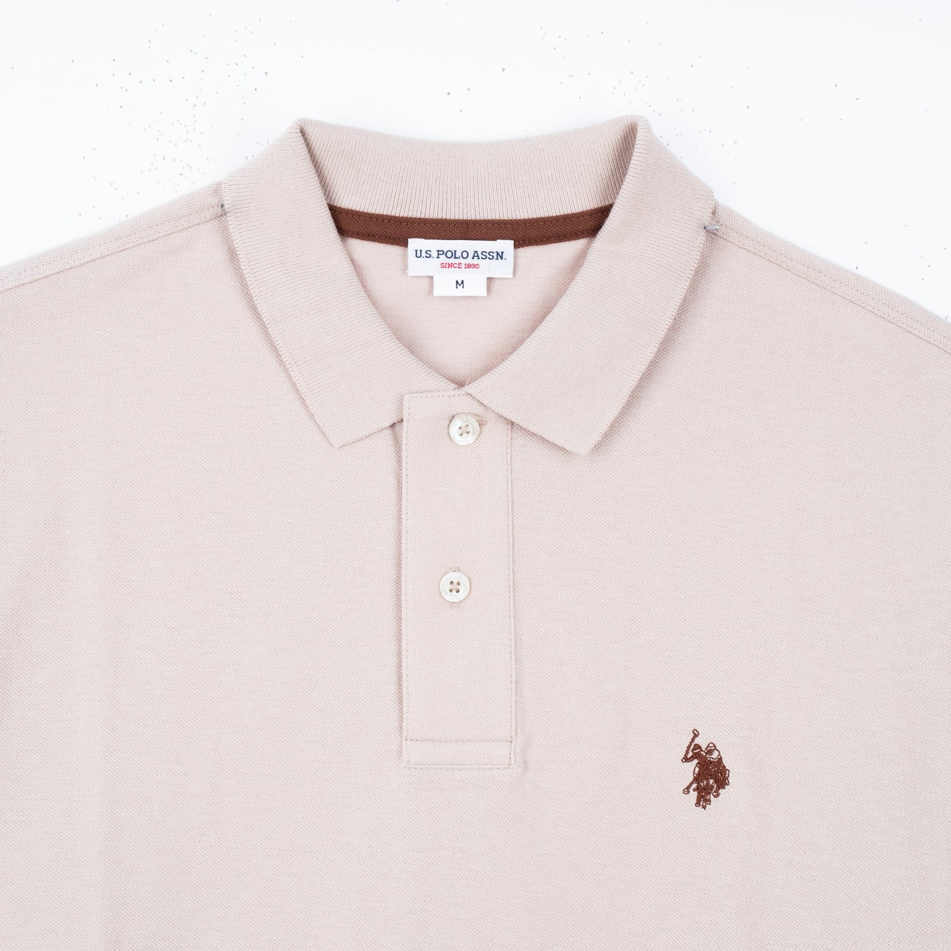 Polo Homem US Polo Bege com Logótipo Castanho Bordado