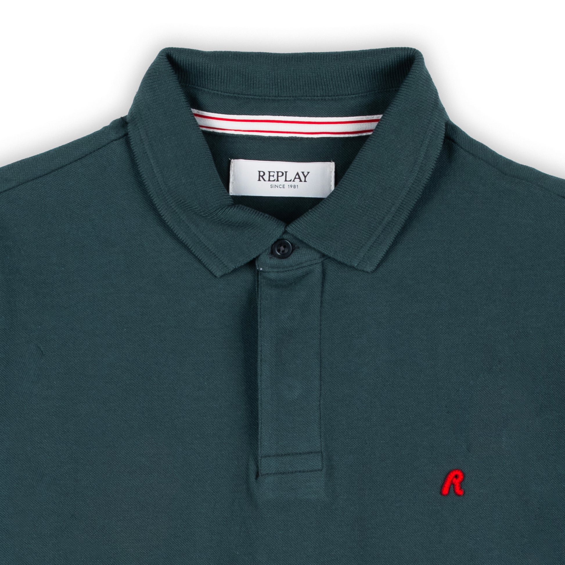 Polo Homem Replay Verde com Detalhe Vermelho