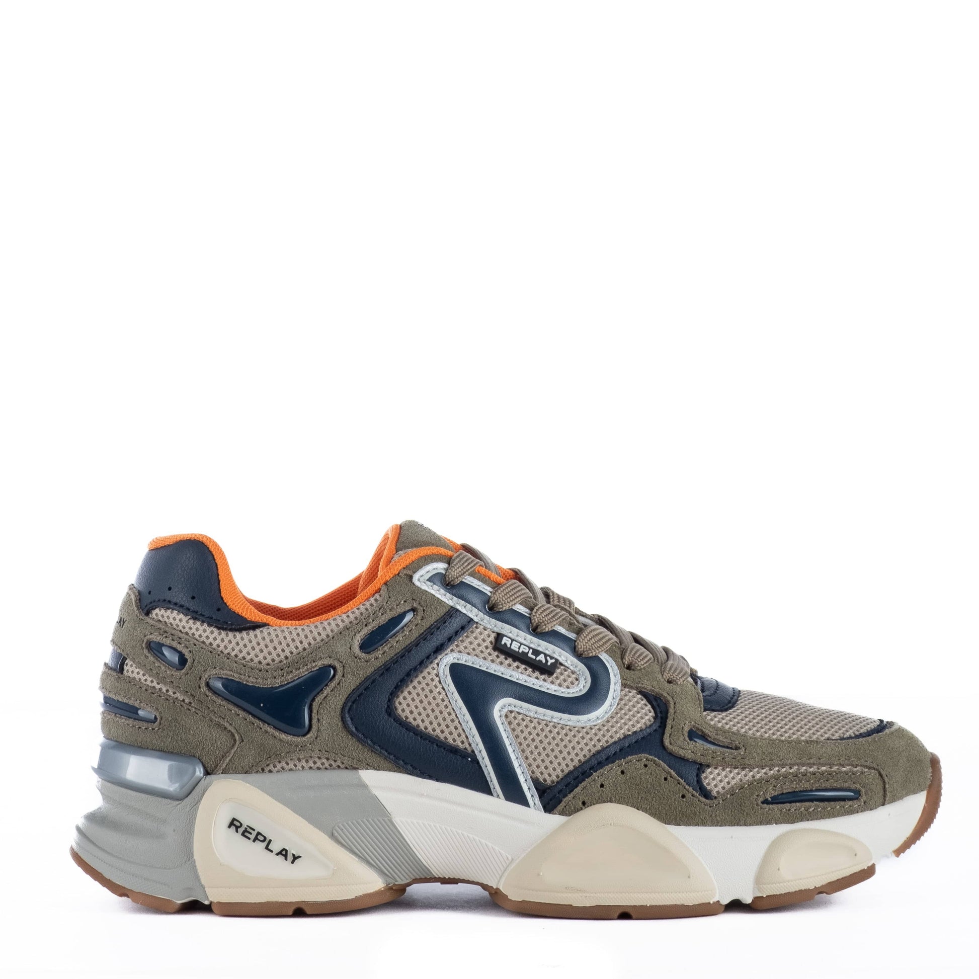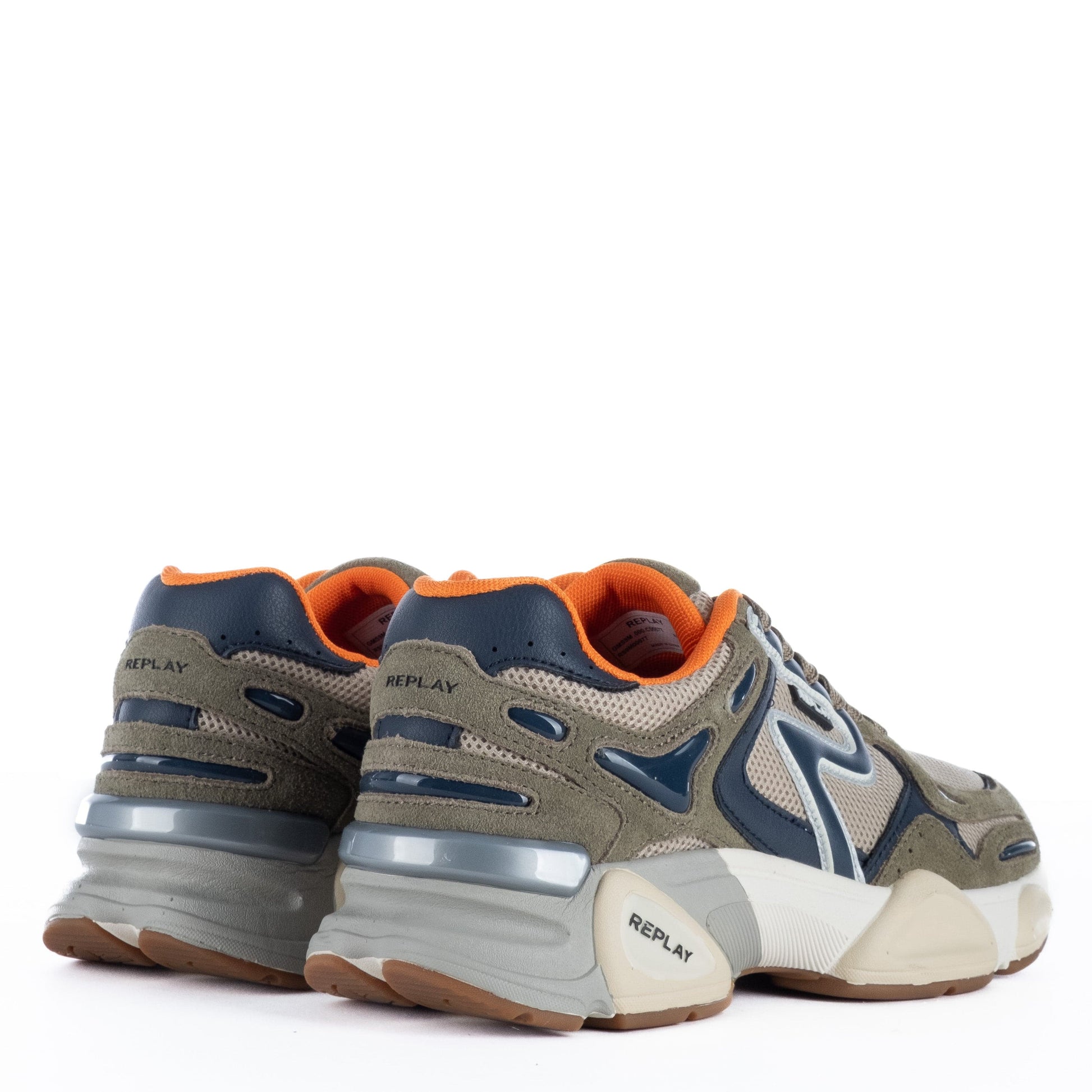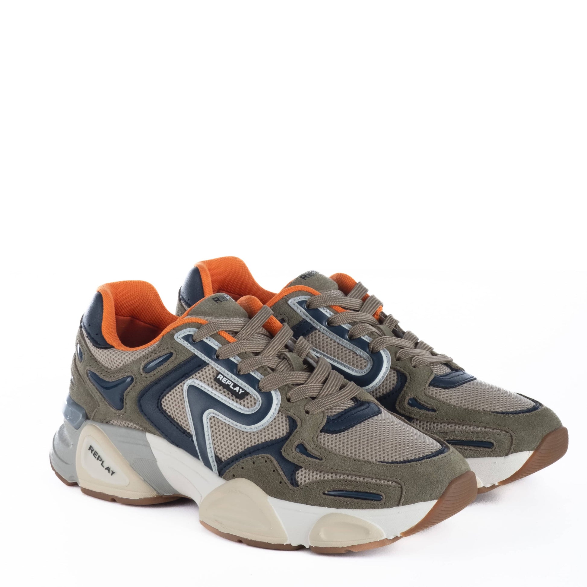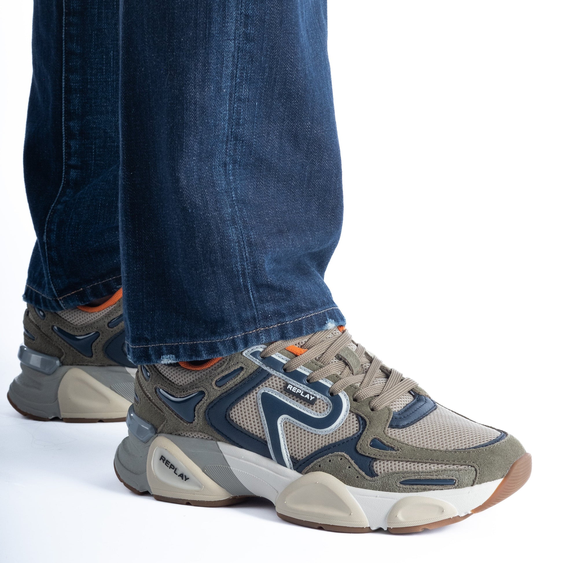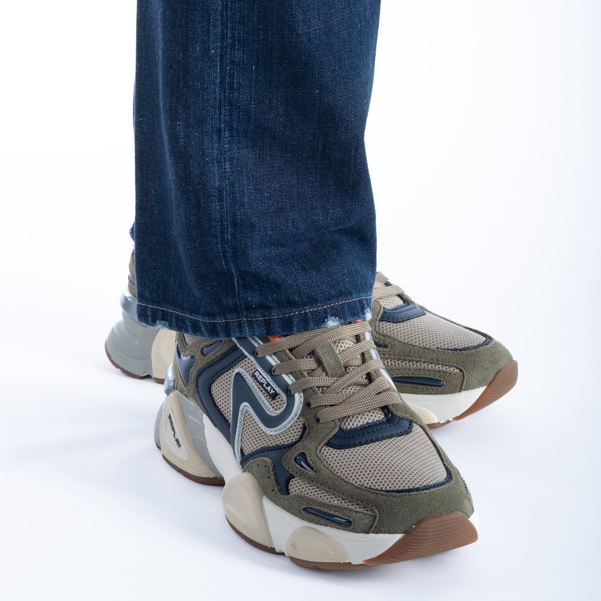 Muda o jogo com os ténis de homem REPLAY — uma fusão irreverente entre estilo retro runner e tecnologia urbana. O design arrojado mistura tonalidades de verde-oliva, azul-marinho e detalhes laranja vibrantes para criar um visual ousado e dinâmico, perfeito para quem não tem medo de se destacar. O conforto é garantido com o forro acolchoado, palmilha ergonómica e sola robusta com efeito amortecedor, ideal tanto para os dias ativos como para looks streetwear ousados.