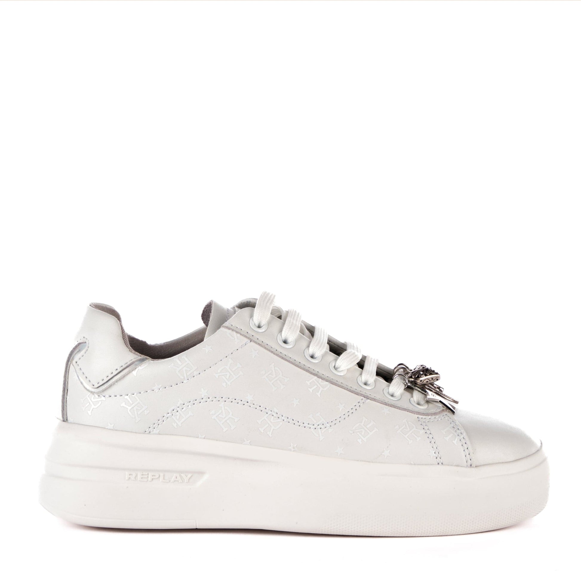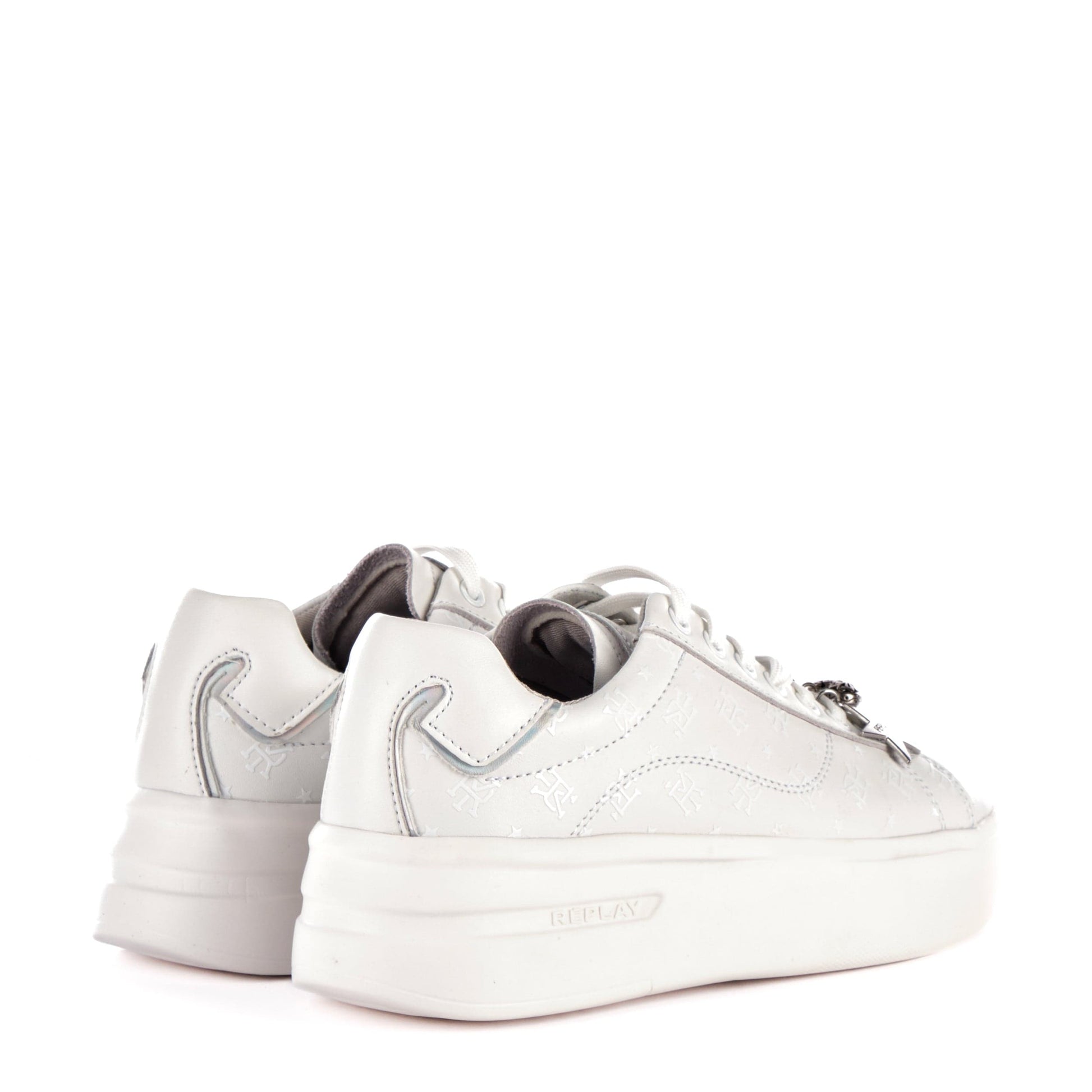 Ténis brancos REPLAY para mulher com padrão monograma em relevo