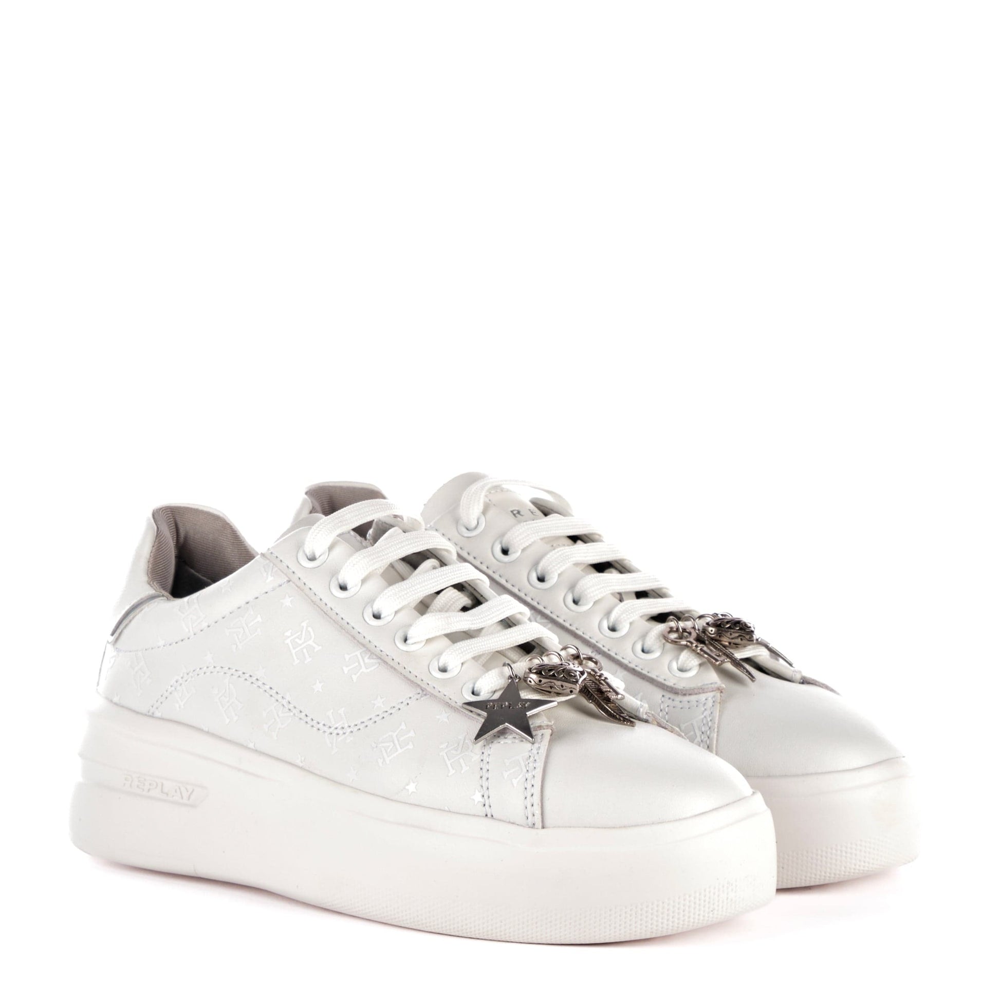 Para quem vive a moda com atitude, os ténis de mulher REPLAY combinam o clássico tom branco com detalhes ousados e elegantes. O padrão monograma com o logo “R” dá um toque premium à silhueta, enquanto os pingentes metálicos decorativos nos atacadores — estrela, coração, folha e chave — elevam o estilo a outro nível.