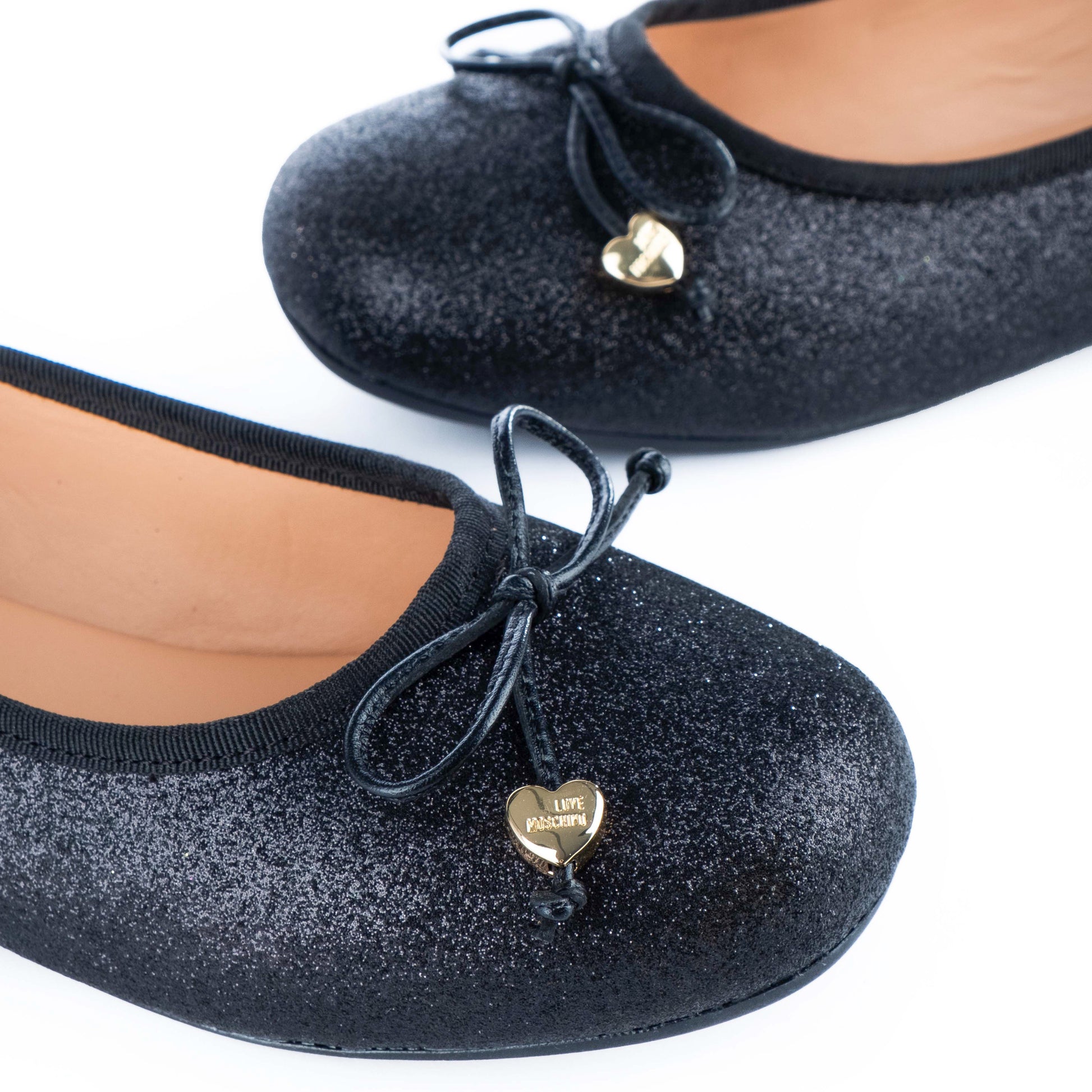 Descobre o charme das sabrinas femininas Love Moschino, perfeitas para dar um toque sofisticado ao seu look. Com acabamento em brilho preto e um delicado laço adornado por um detalhe dourado, são ideais para qualquer ocasião. Fabricadas com materiais de alta qualidade para garantir conforto e durabilidade