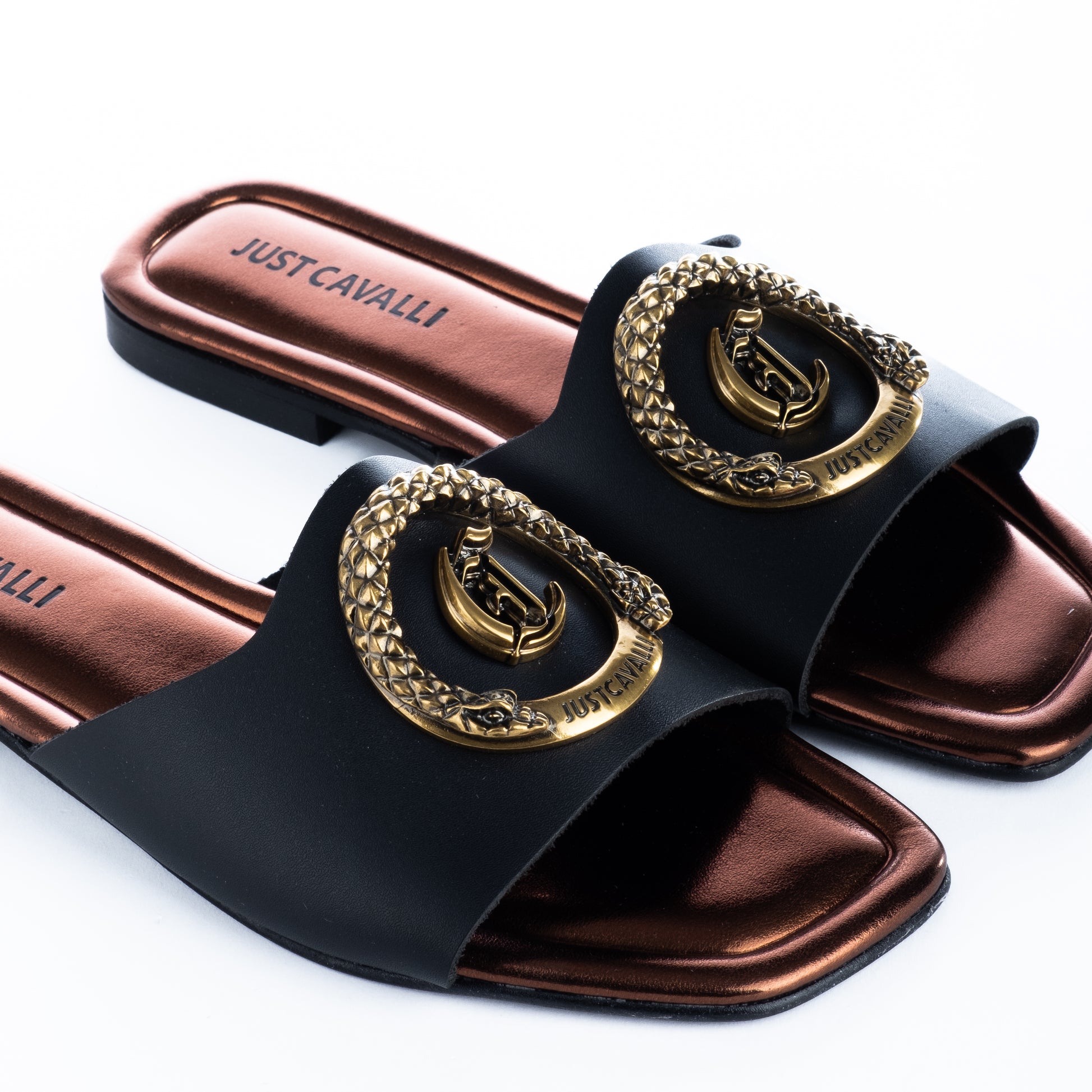 Sandálias Mulher Just Cavalli Pretas com Detalhe Dourado