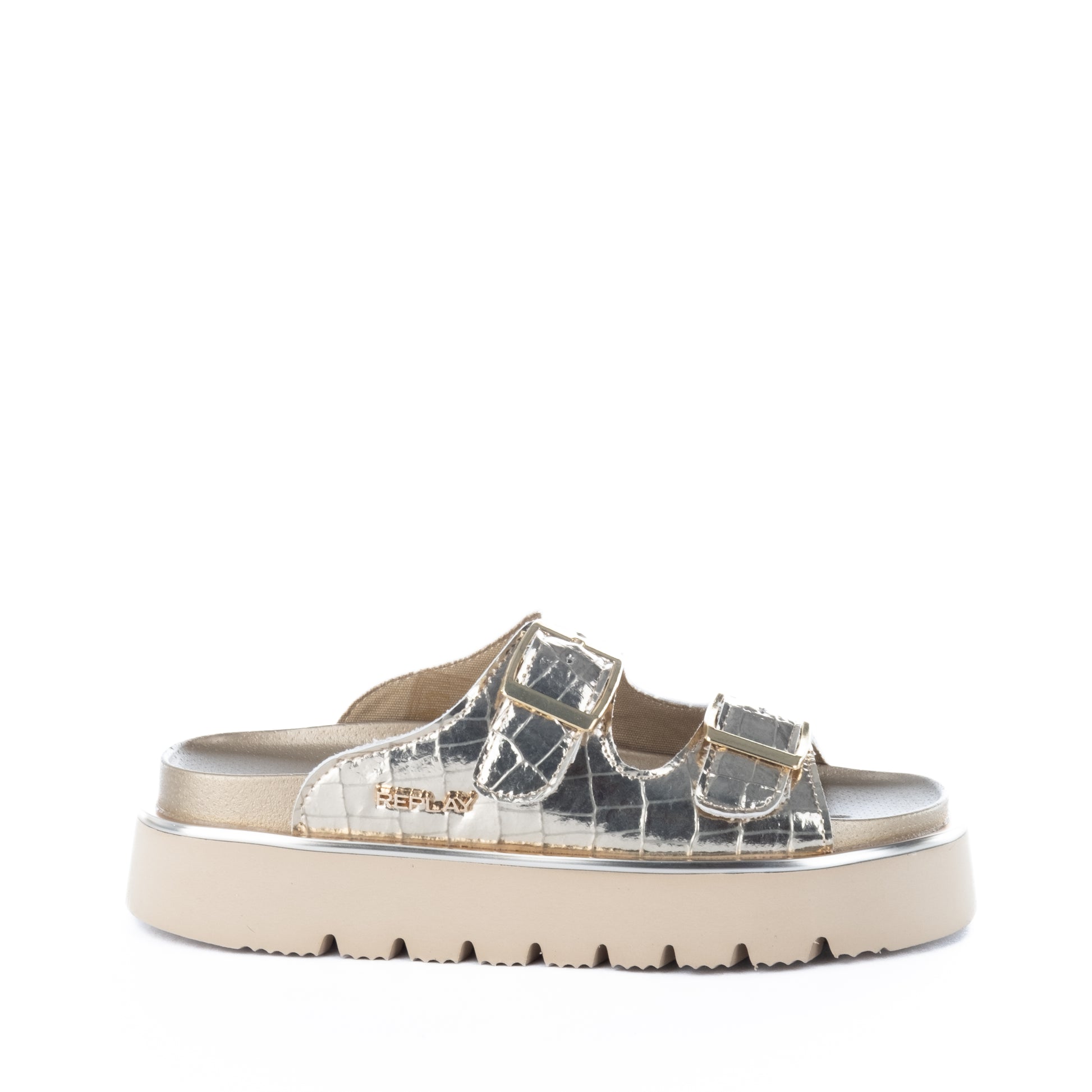 Sandálias Femininas Replay Prateadas com Fivelas