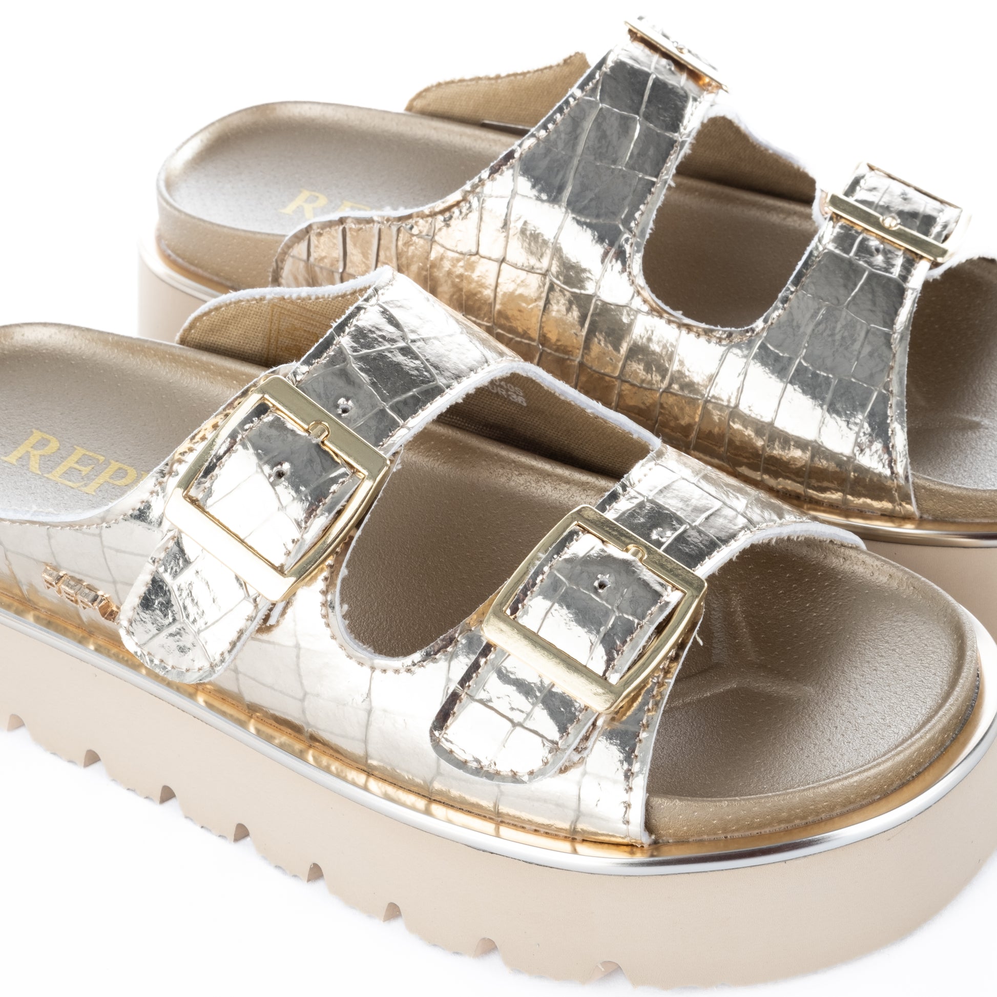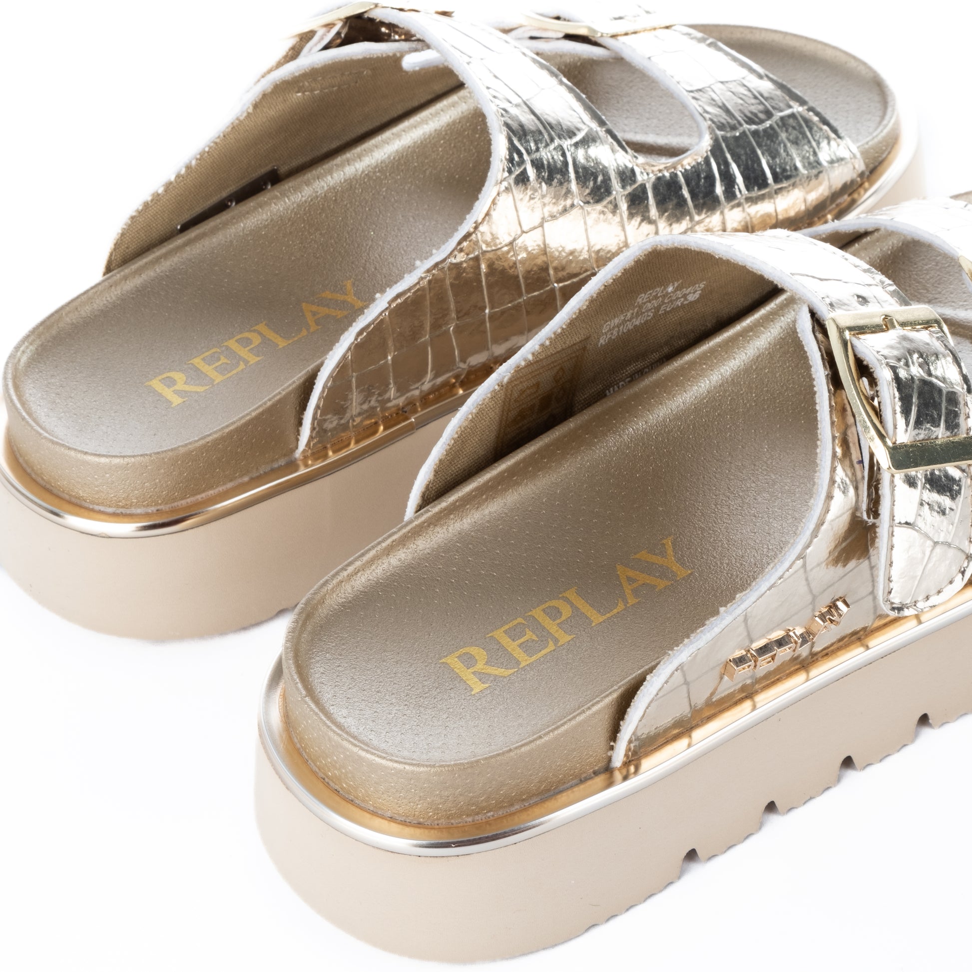 As Sandálias Replay trazem estilo e conforto para o seu dia a dia. Com acabamento prateado e fivelas ajustáveis, são ideais para quem busca sofisticação e praticidade. Possuem sola robusta para maior durabilidade e conforto ao caminhar. Material de alta qualidade garante um calçado resistente e atraente