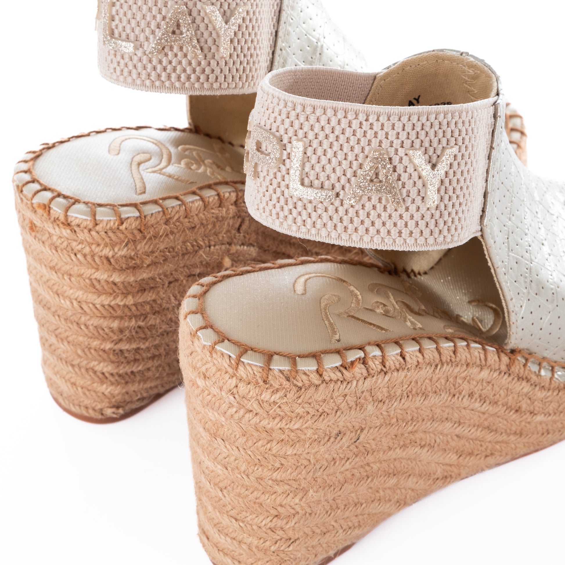 As sandálias femininas Replay oferecem estilo e conforto para o dia a dia. Com um design elegante prateado, possuem salto anabela em corda, alça de elástico ajustável, proporcionando fácil calce e ajuste seguro. Feitas com materiais de alta qualidade, são ideais para combinar com diversos looks de verão