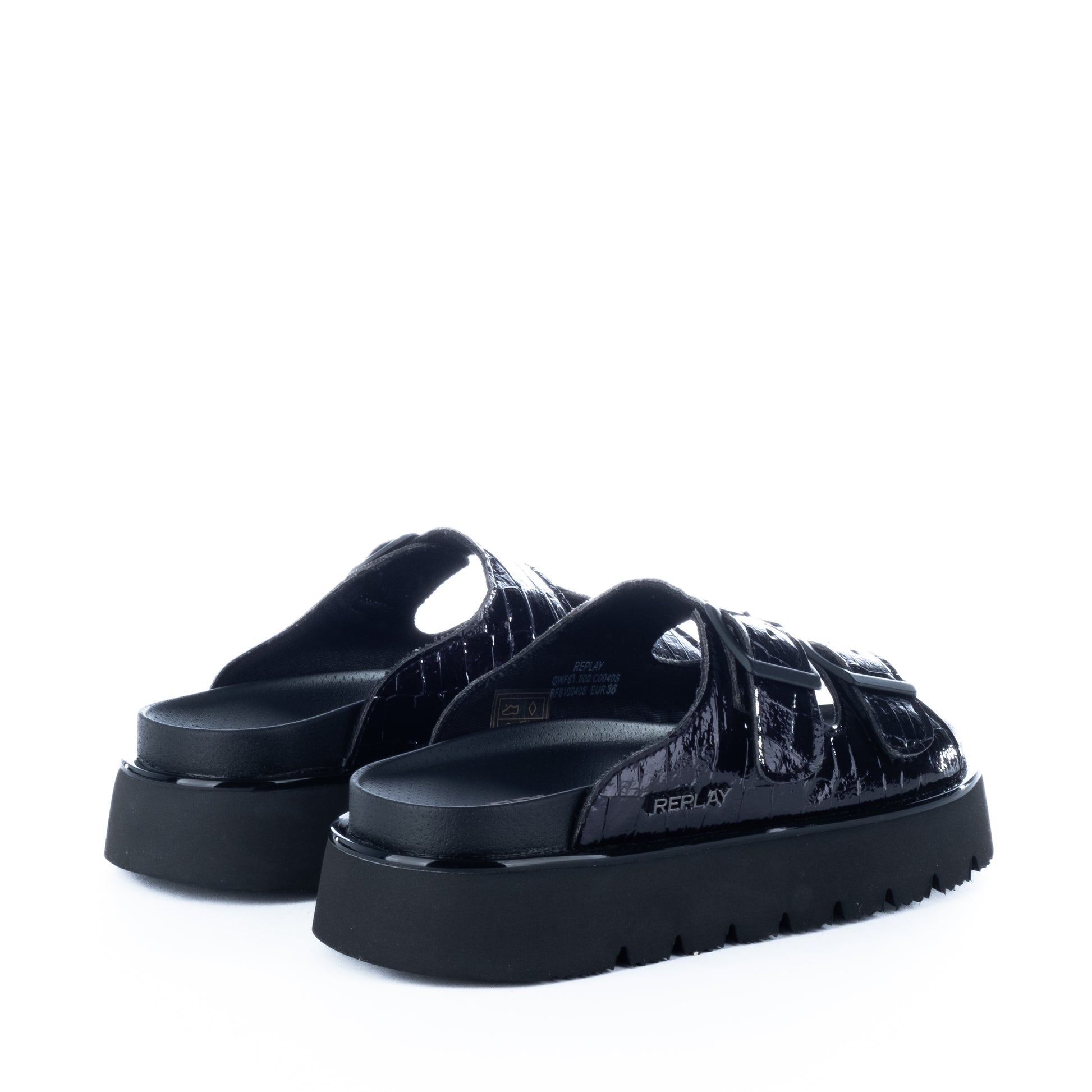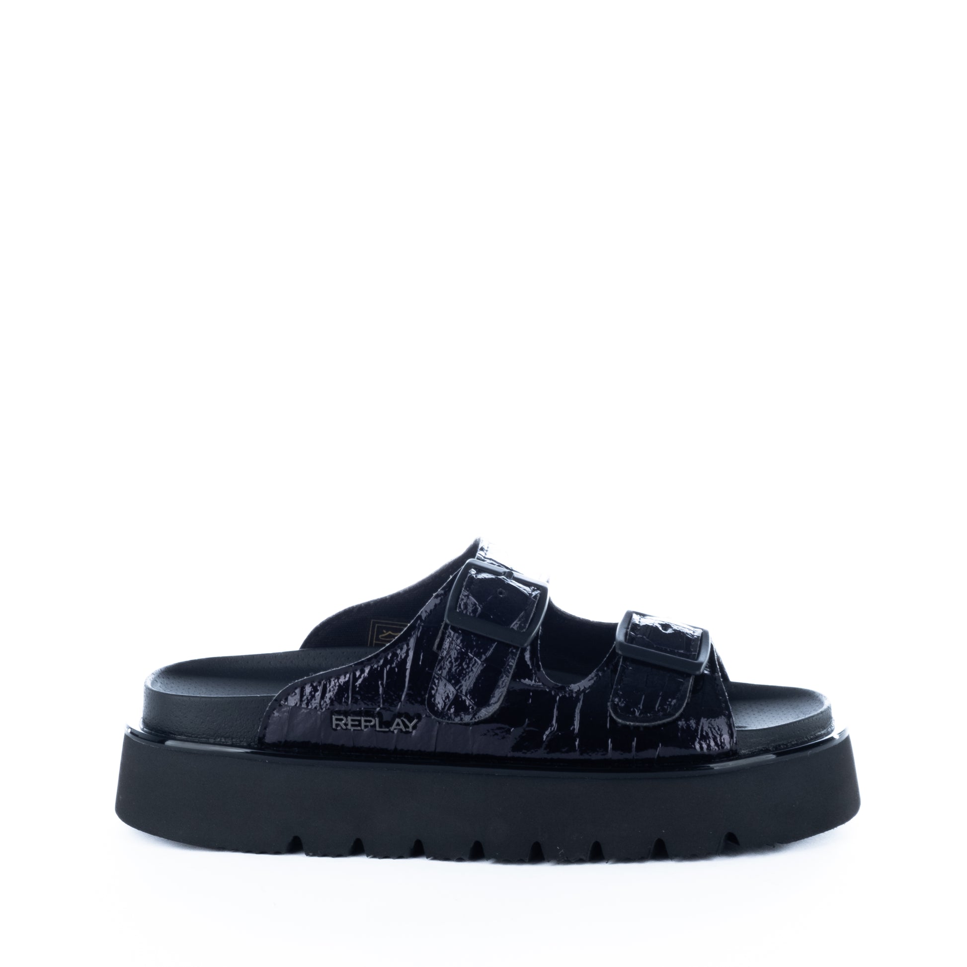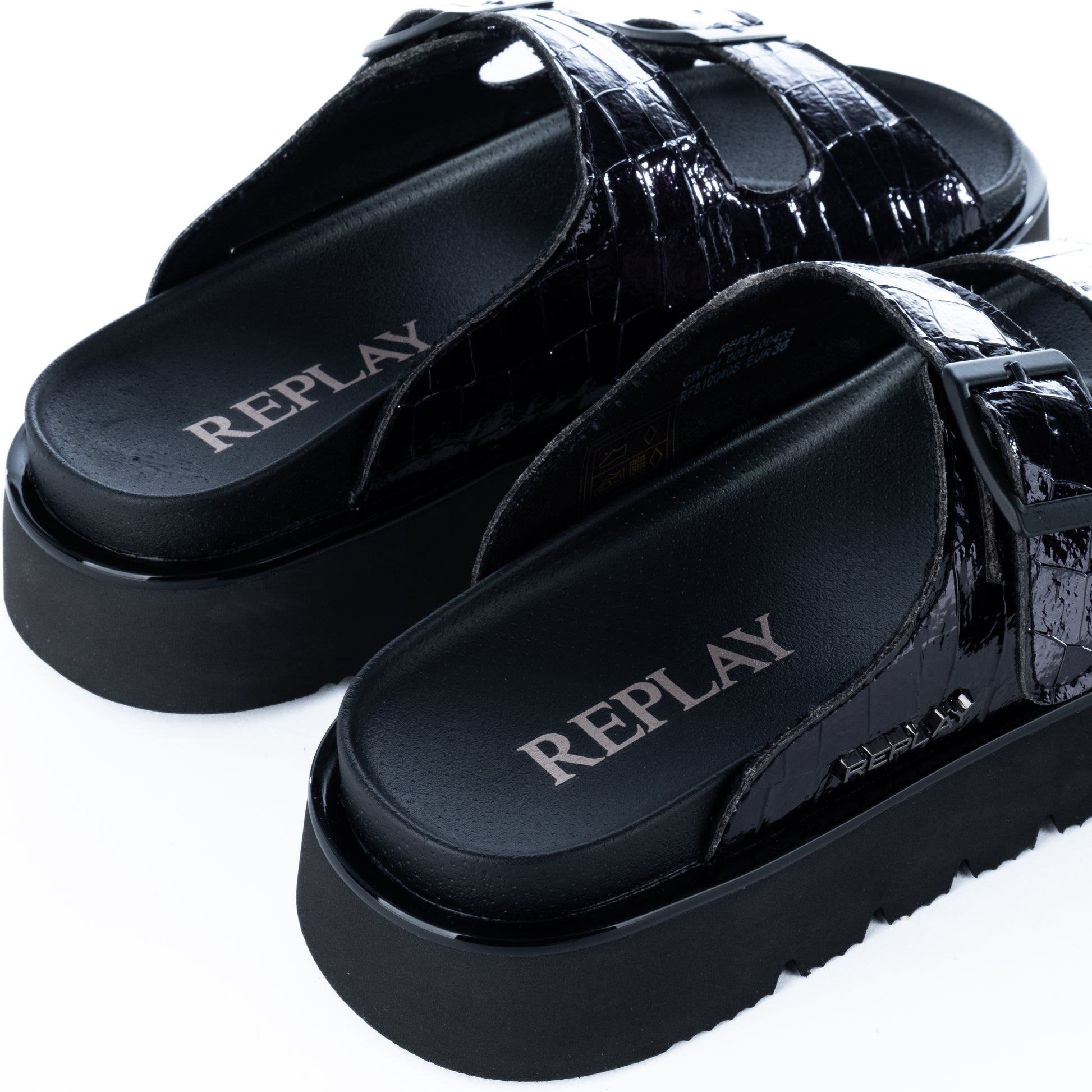 Sandálias Femininas Replay Pretas com Fivelas e Plataforma
