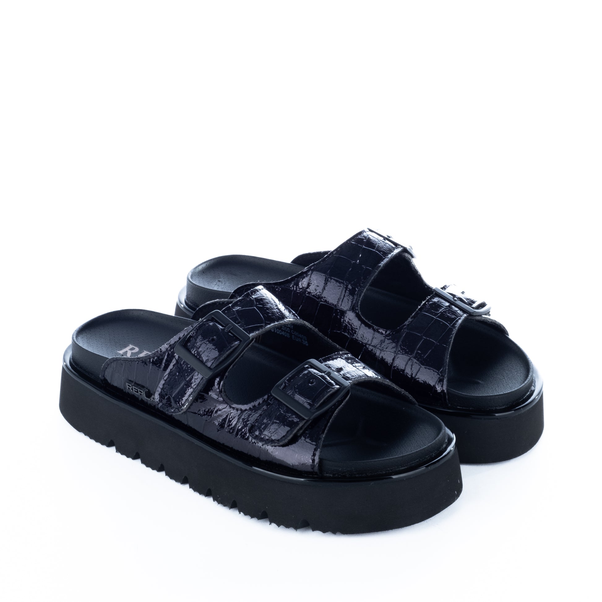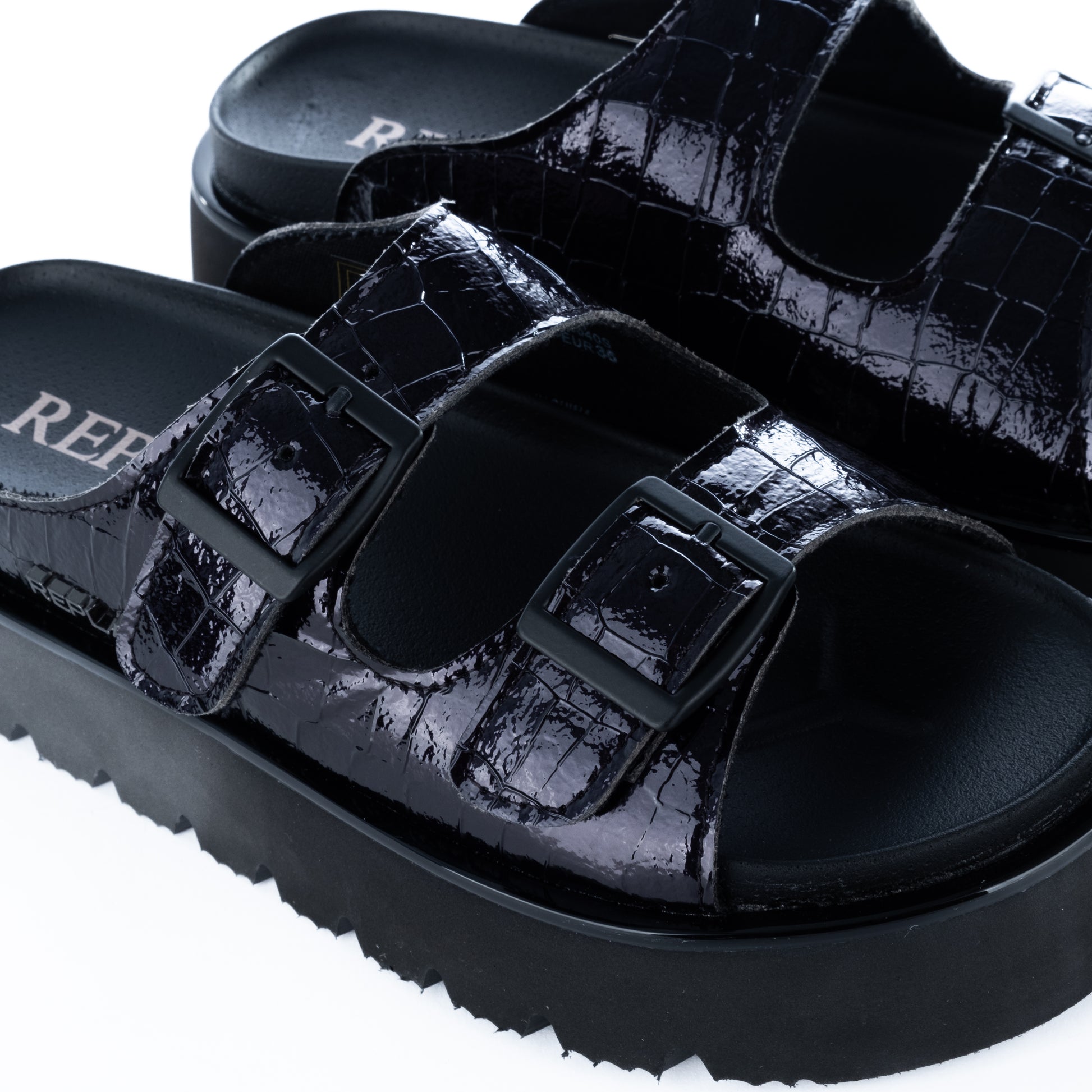 Descobre o estilo e conforto das sandálias femininas Replay. Com um elegante acabamento preto brilhante e fivelas ajustáveis, estas sandálias são perfeitas para qualquer ocasião. A sola de plataforma oferece suporte ergonômico, enquanto o material de alta qualidade garante durabilidade e conforto durante o uso diário