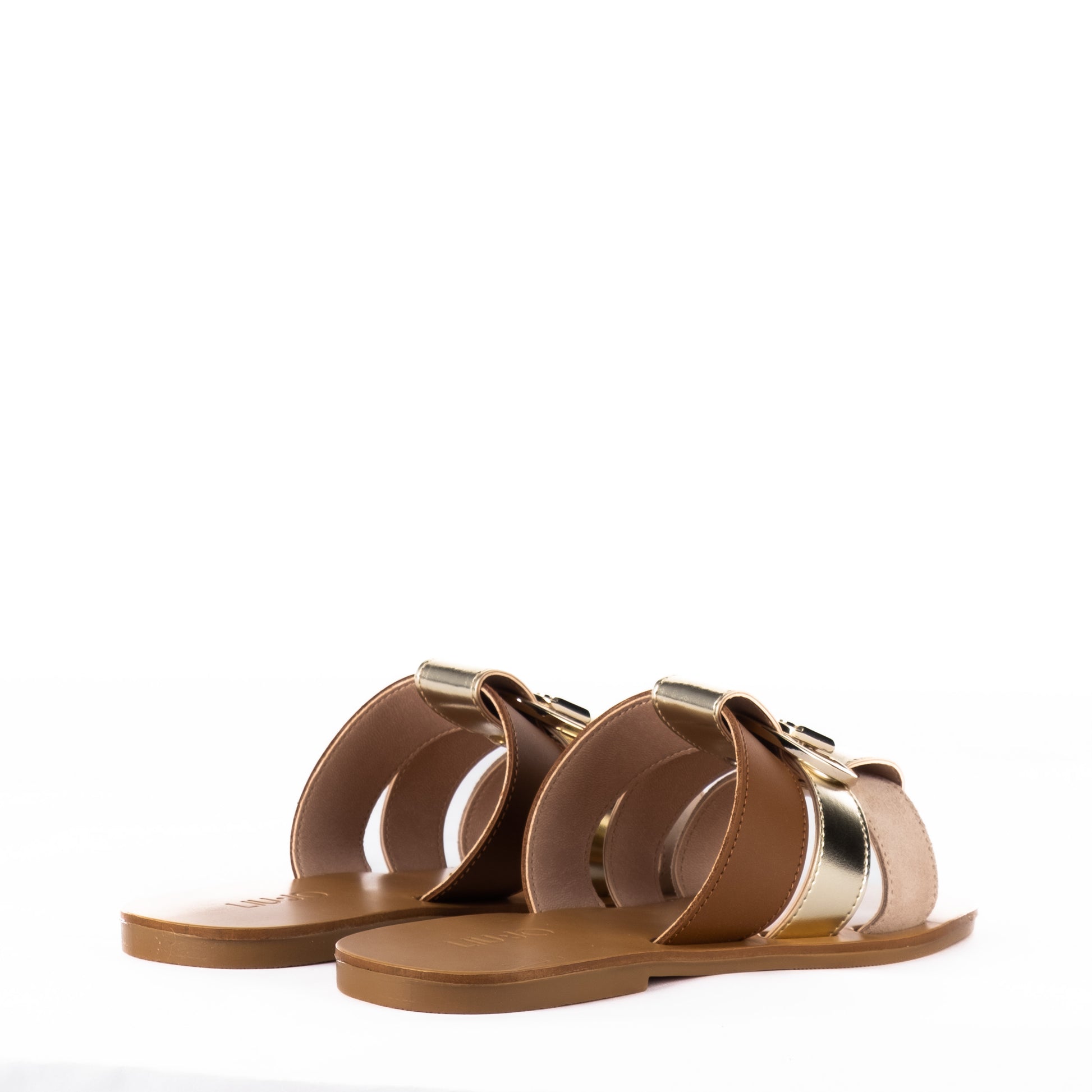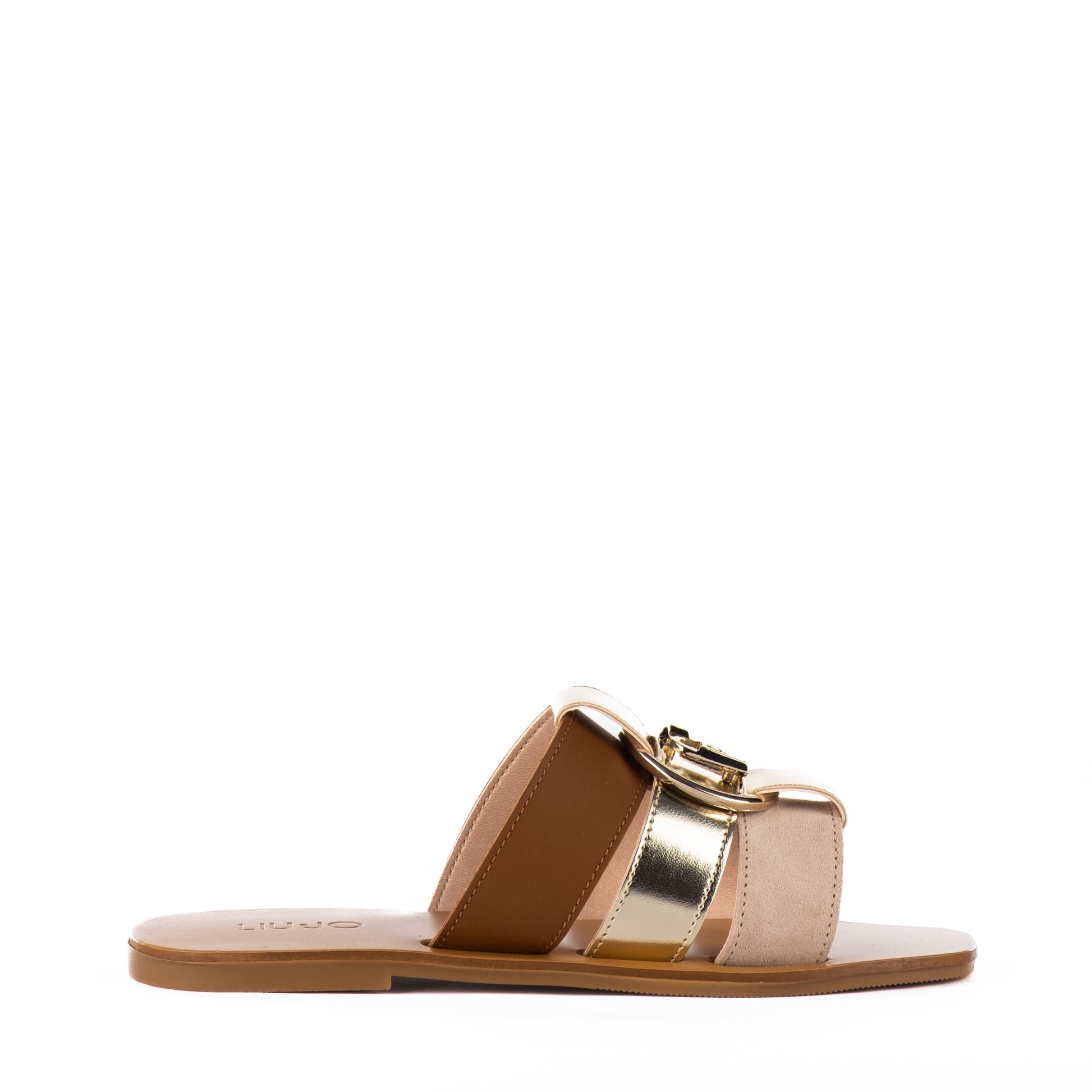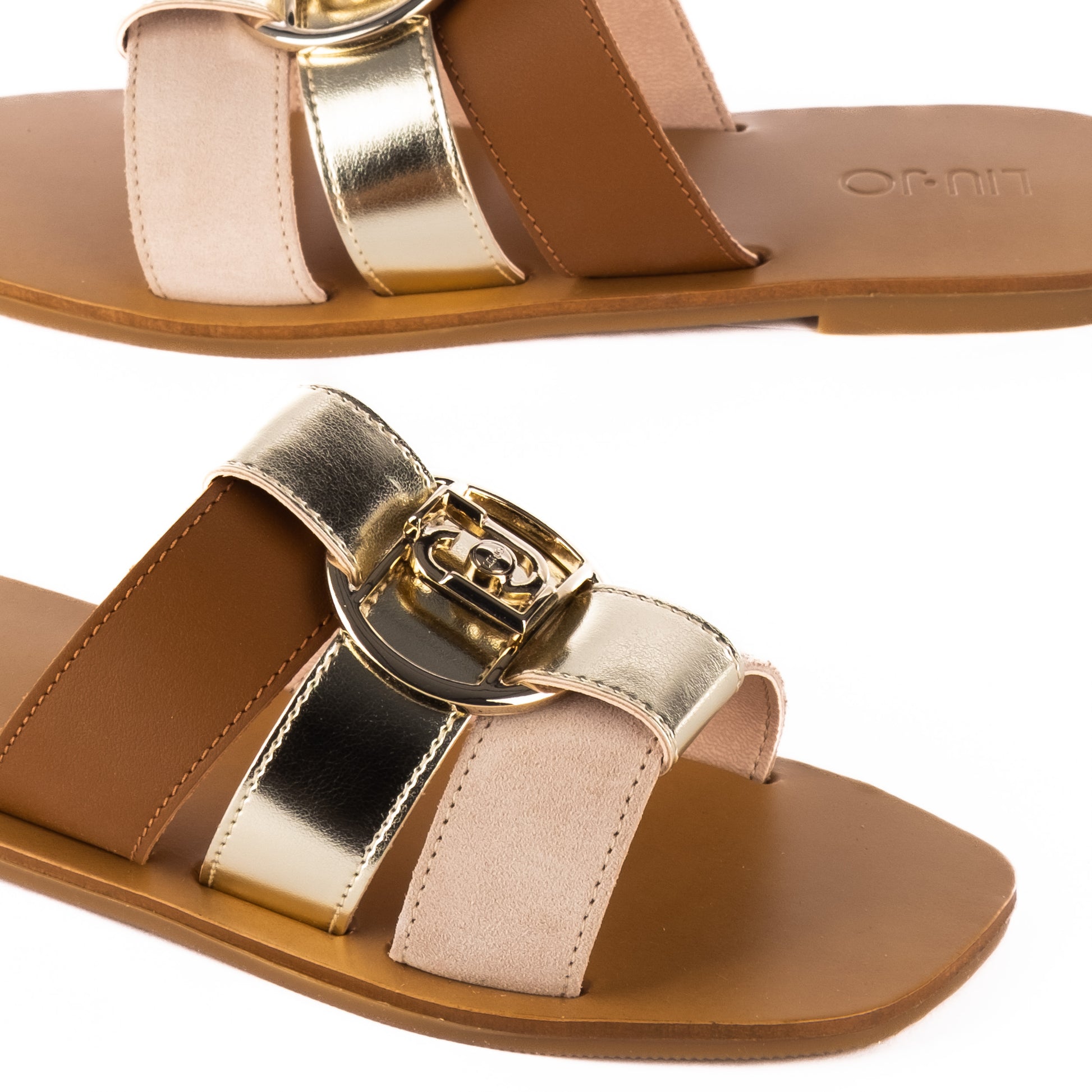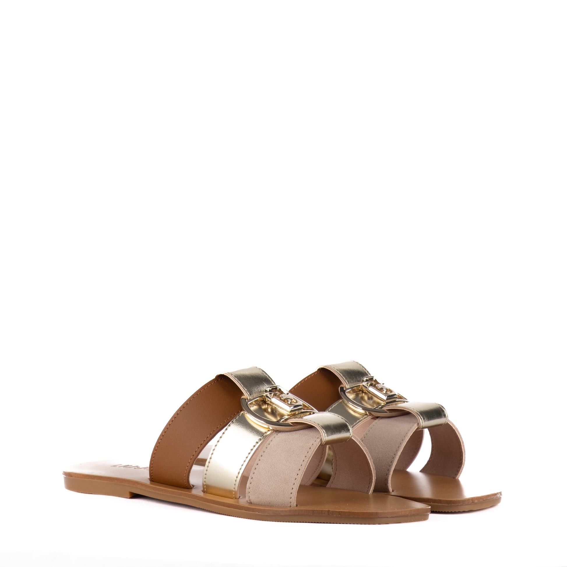 Sandálias Mulher Liu Jo em Bege e Dourado com Detalhes Metalizados
