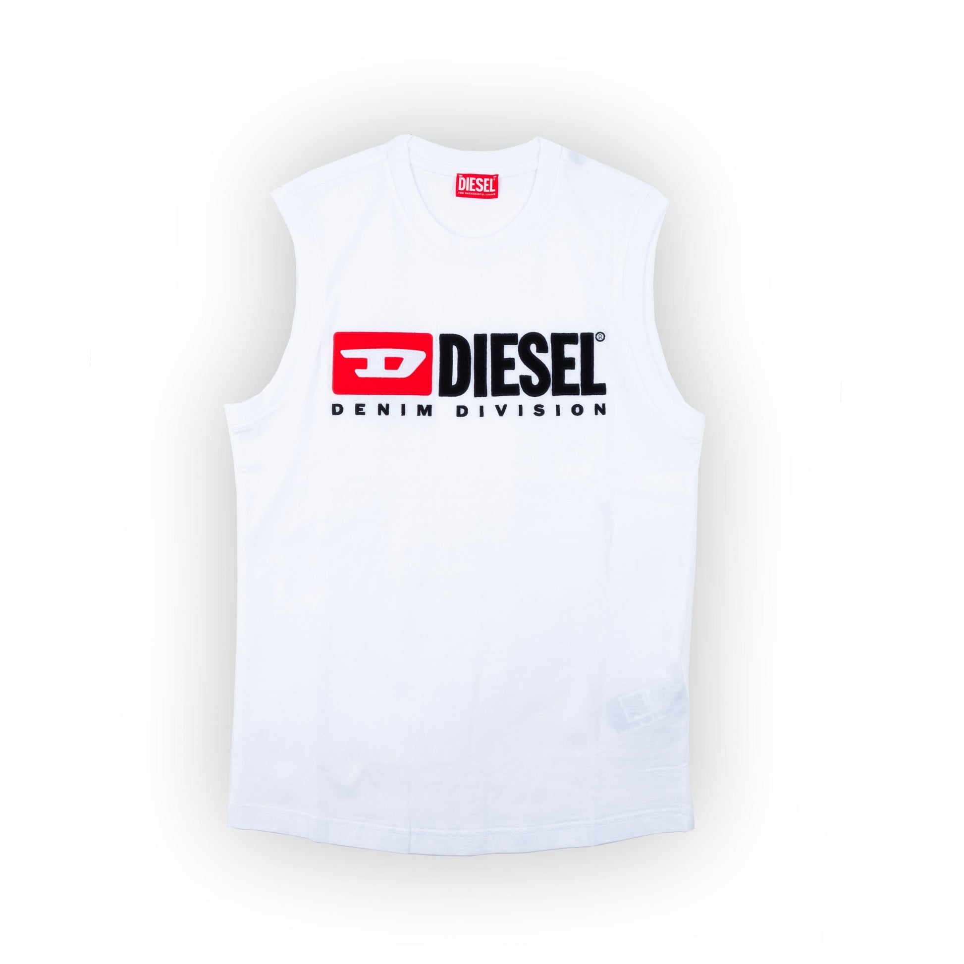 Para um look arrojado e descontraído. Esta t-shirt caveada branca da Diesel destaca-se pelo logótipo frontal "Denim Division" em contraste preto e vermelho. Ideal para dias quentes, treinos ou visuais urbanos com personalidade. O corte sem mangas e o tecido leve garantem conforto e liberdade de movimentos. | - Marca: Diesel | - Cor: Branco | - Estilo: Caveada (sem mangas) | - Logótipo frontal Diesel Denim Division | - Gola redonda | - Corte reto e confortável | - Estilo desportivo, casual e urbano