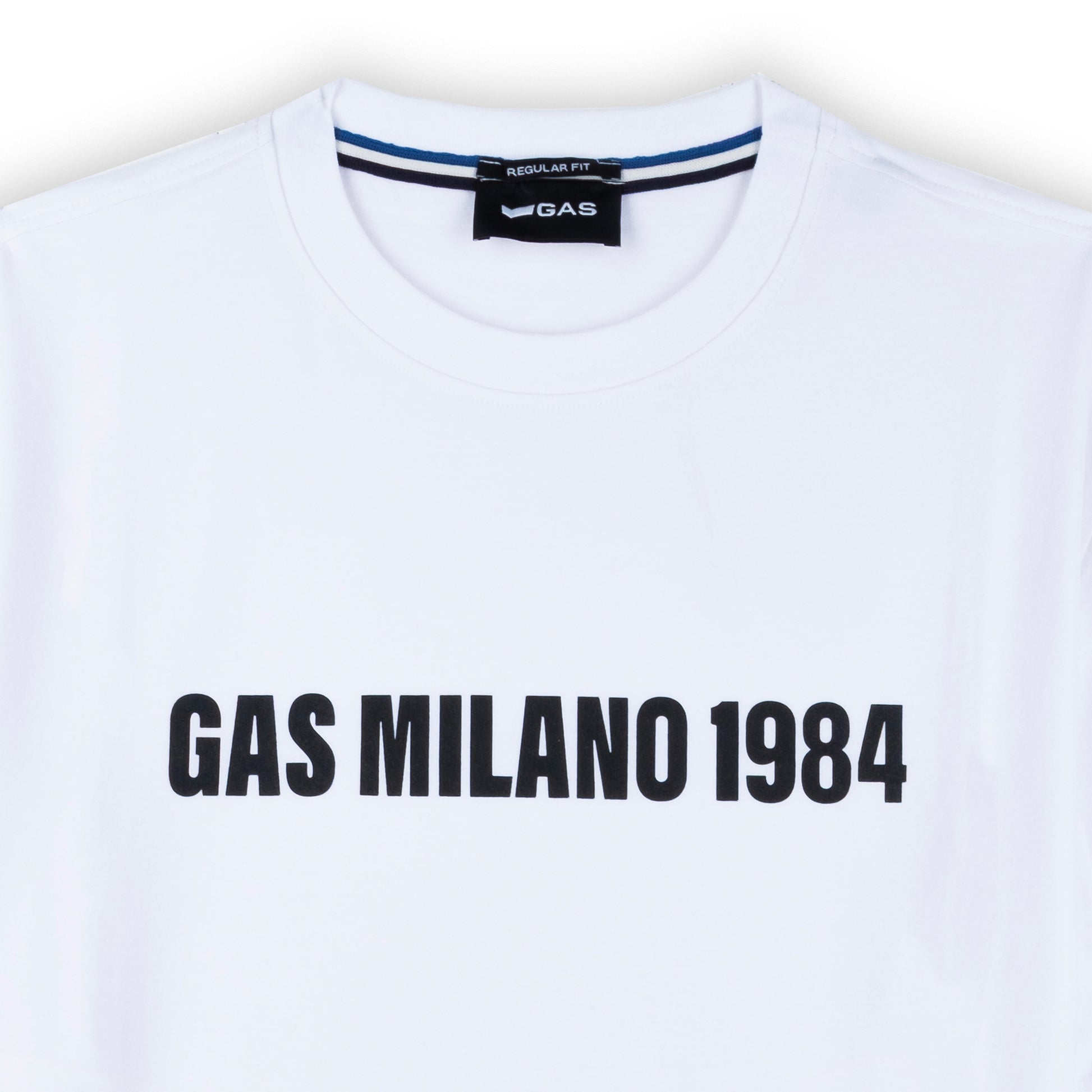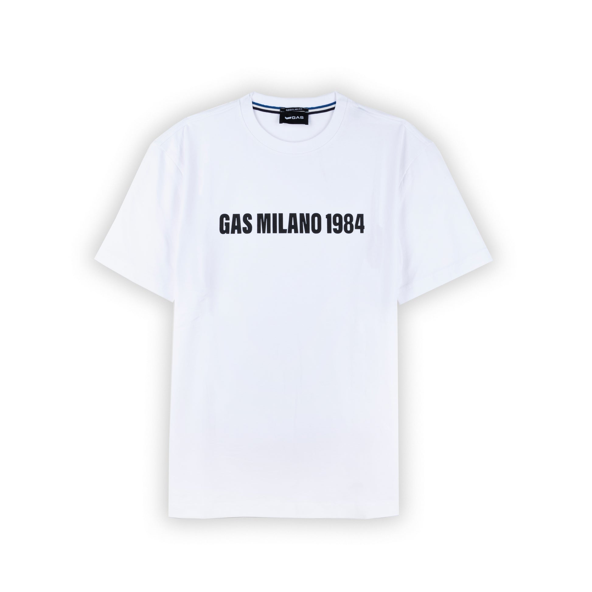 T-shirt masculina Gas, perfeita para quem busca estilo e conforto. De cor branca, esta peça apresenta a icônica estampa "Gas Milano 1984". Confeccionada em material de qualidade que garante durabilidade e suavidade ao toque
