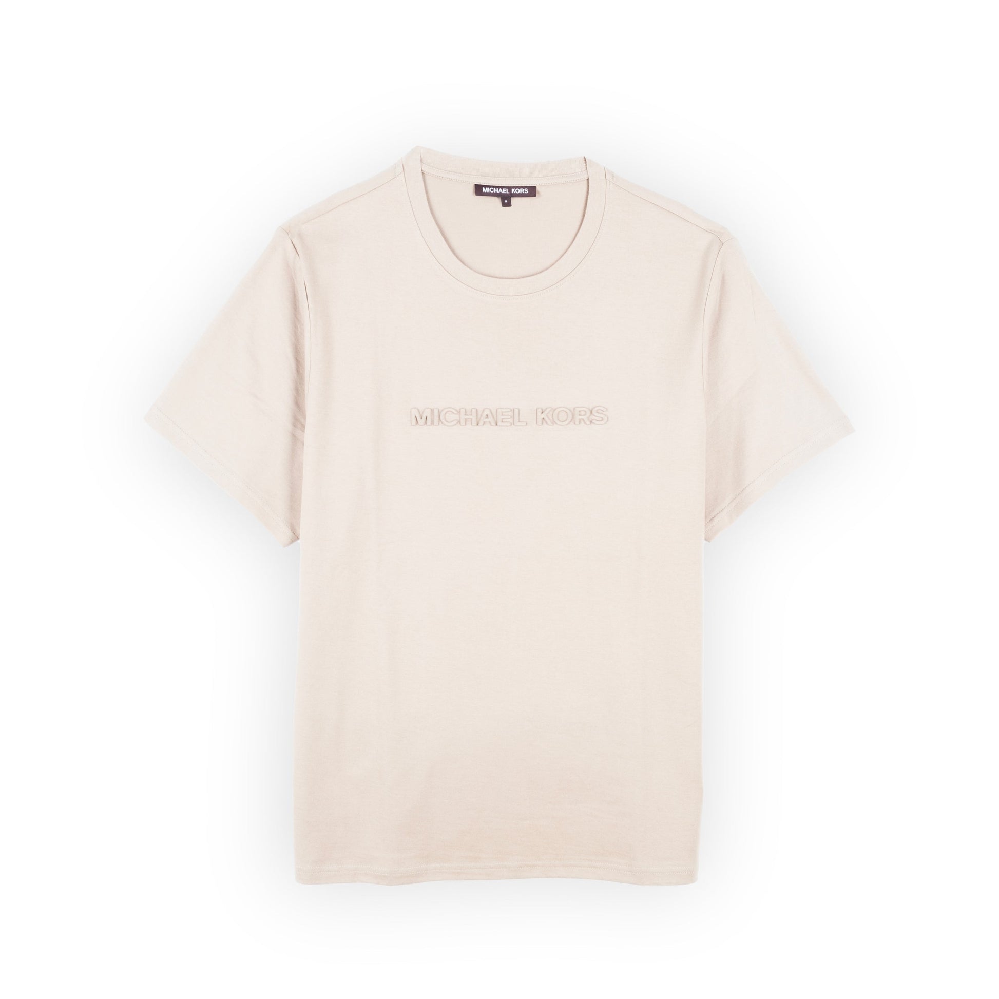 Minimalista e sofisticada, esta t-shirt bege da Michael Kors destaca-se pelo logótipo subtil em relevo no peito. Confeccionada em algodão premium, é ideal para um look casual e elegante.