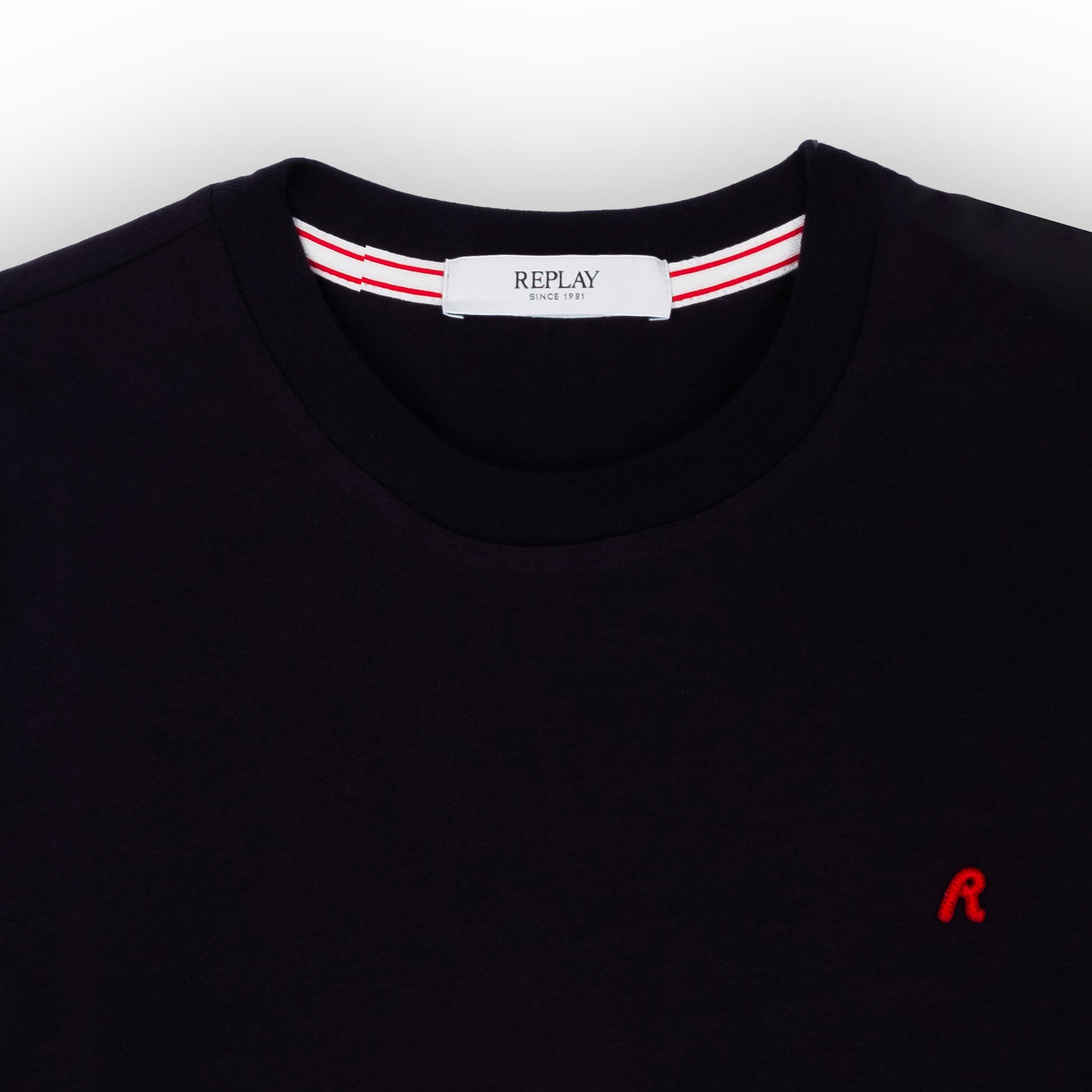 T-Shirt Homem Preta Replay com Logo Vermelho Pequeno