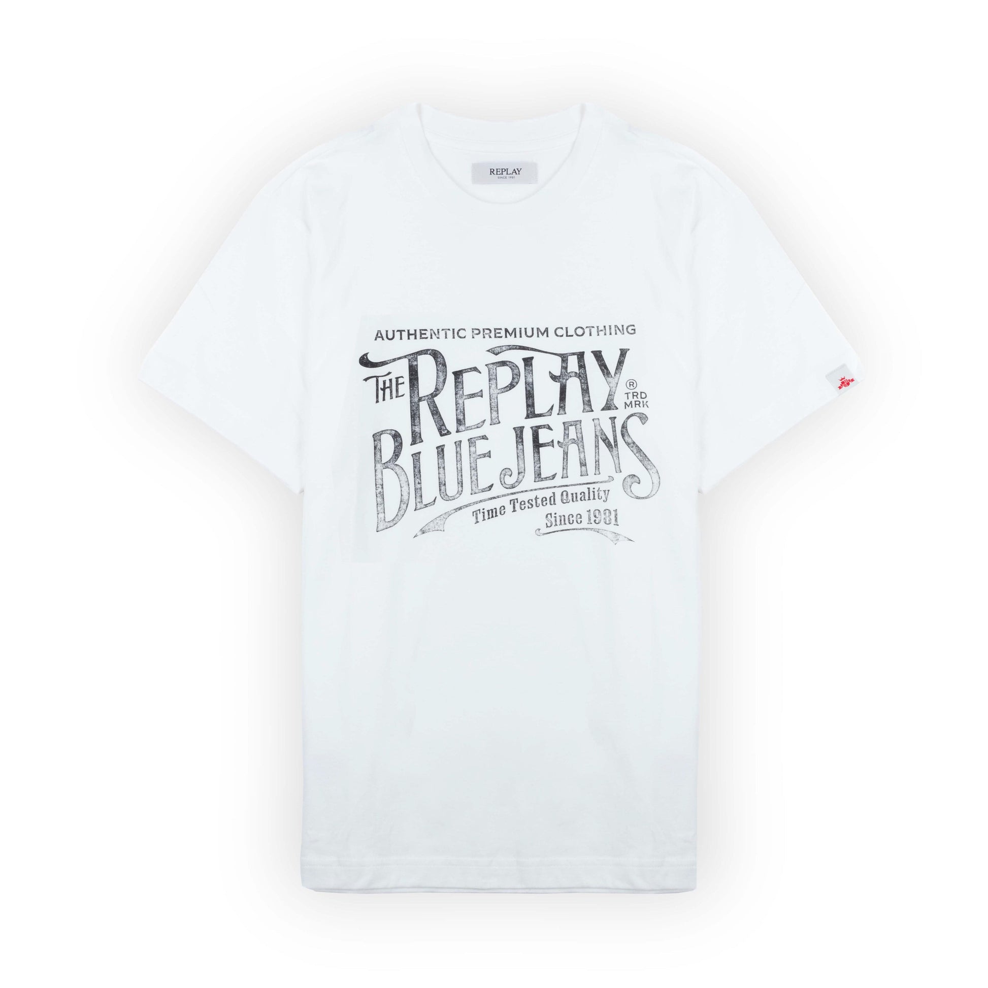 Descobre a T-Shirt Homem Replay Branca, uma peça essencial para o guarda-roupa masculino, combinando estilo e conforto. Com estampa frontal de logo vintage, é ideal para um look casual. Confeccionada em tecido de alta qualidade para um toque suave e duradouro
