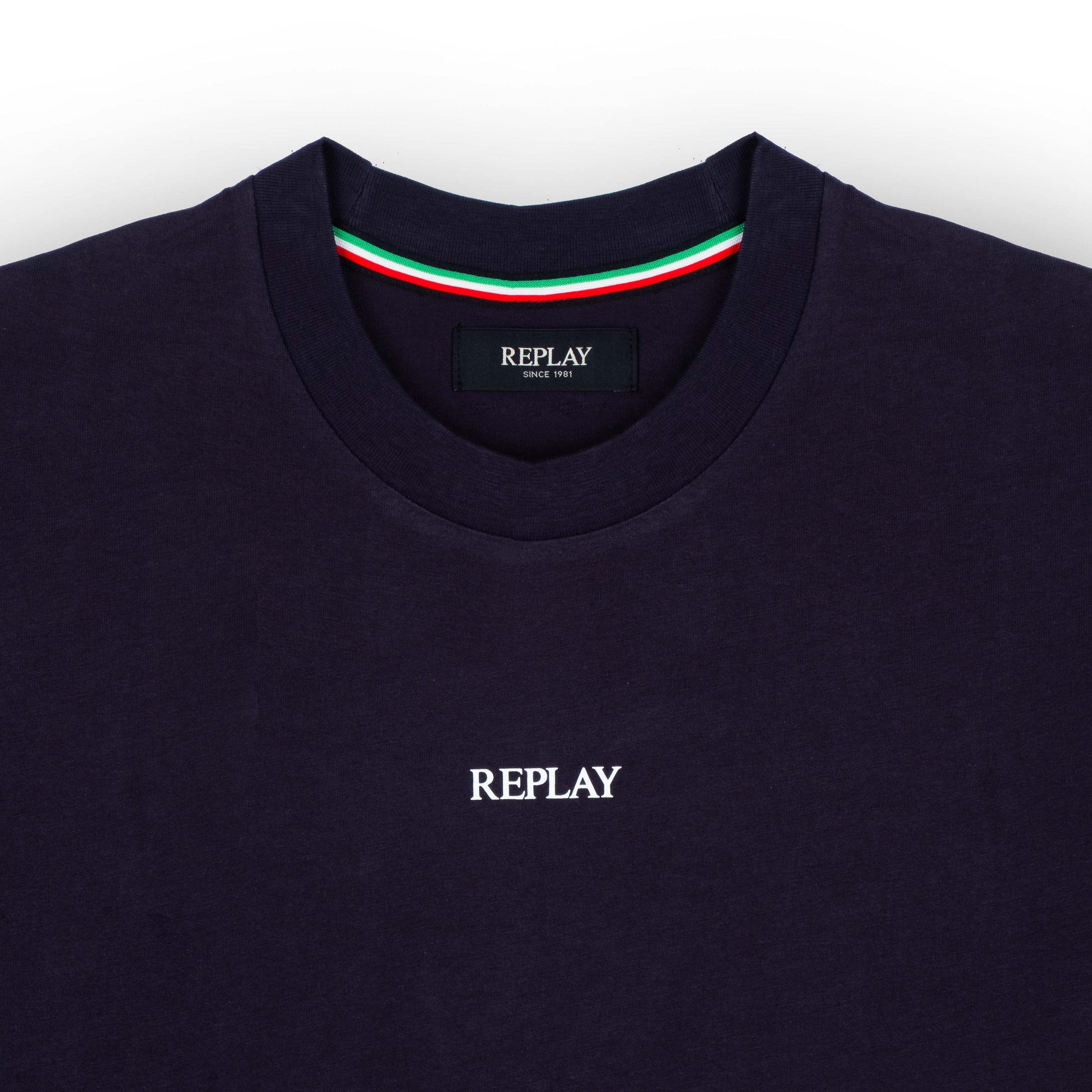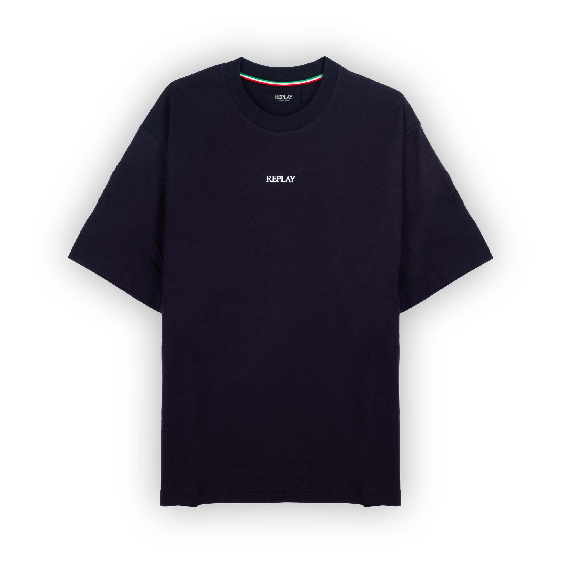T-Shirt Homem Replay Preta com Logo Minimalista