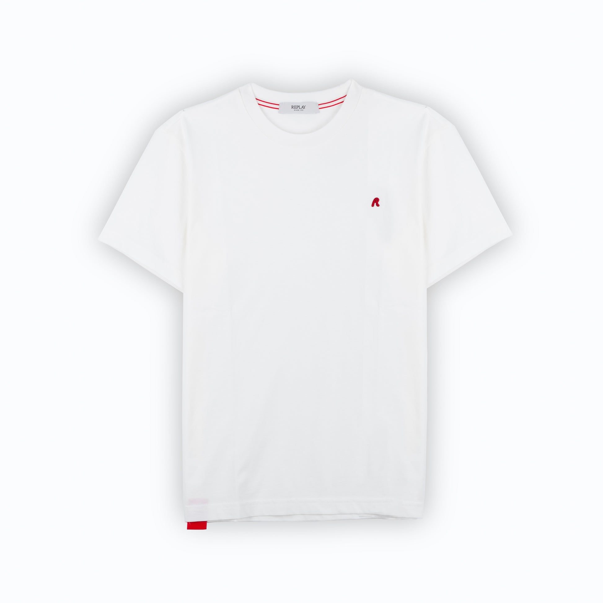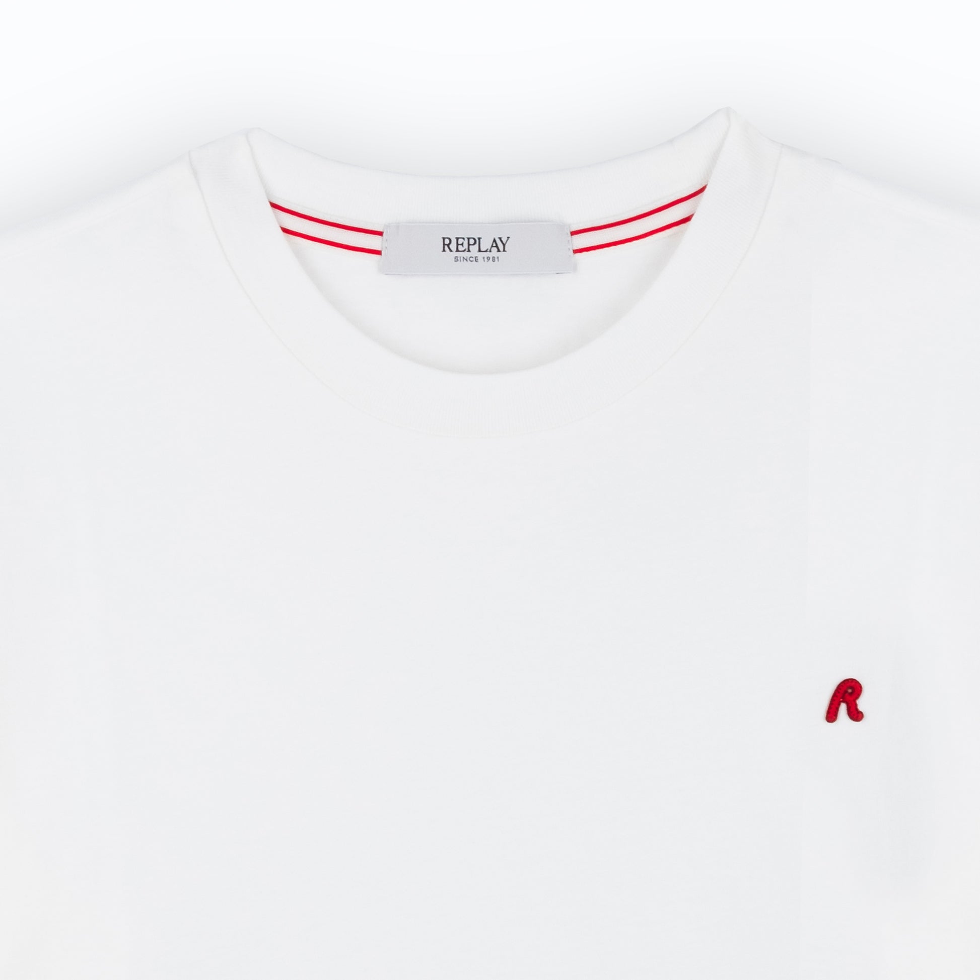 T-Shirt Homem Replay Branca com Detalhe Vermelho