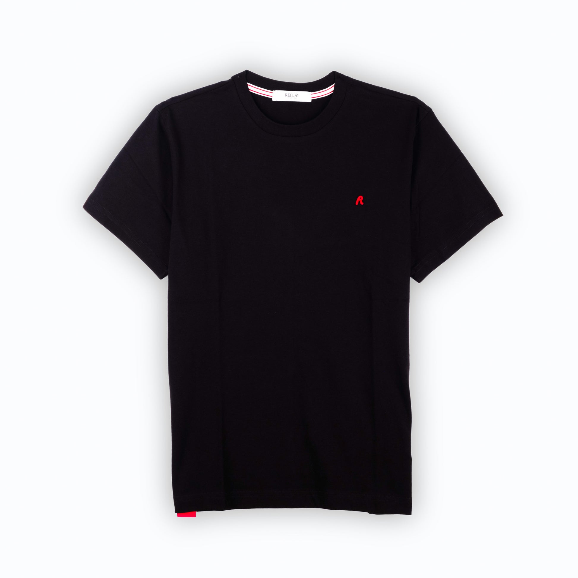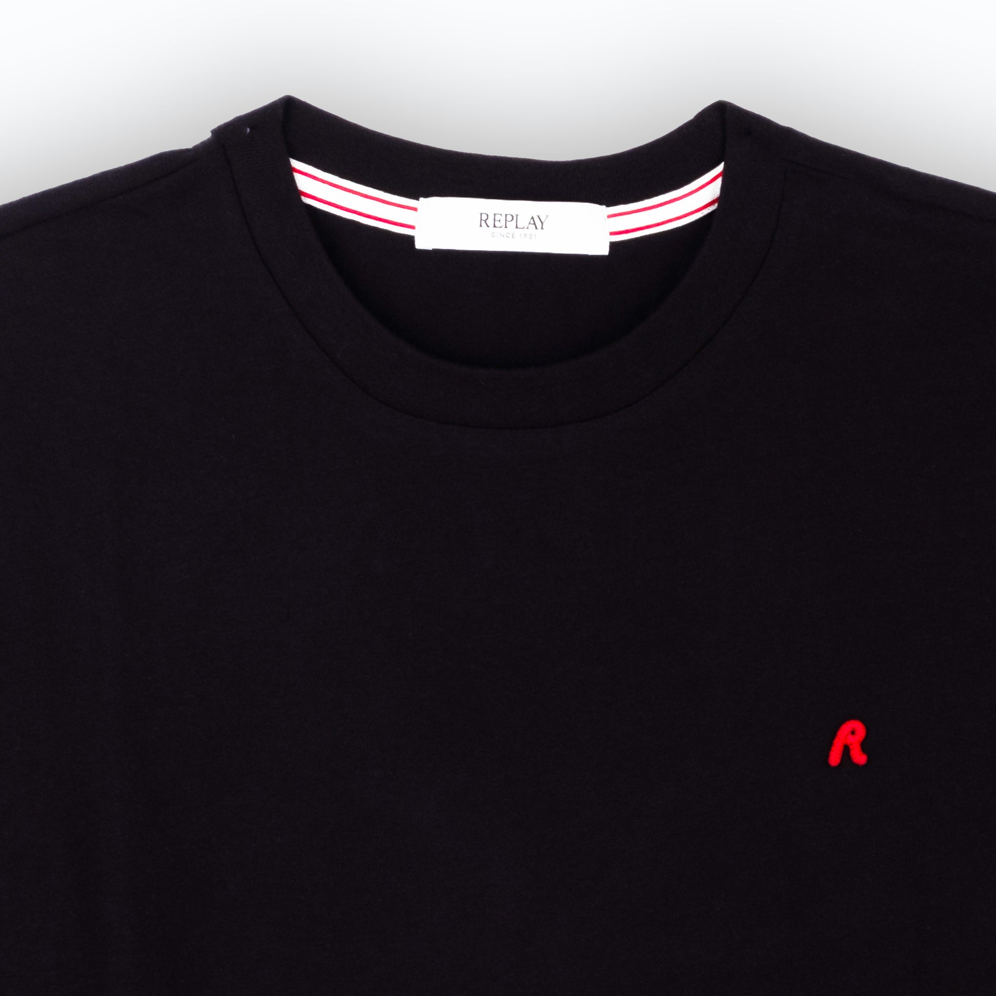 T-Shirt Homem Replay Preta com Logo Vermelho