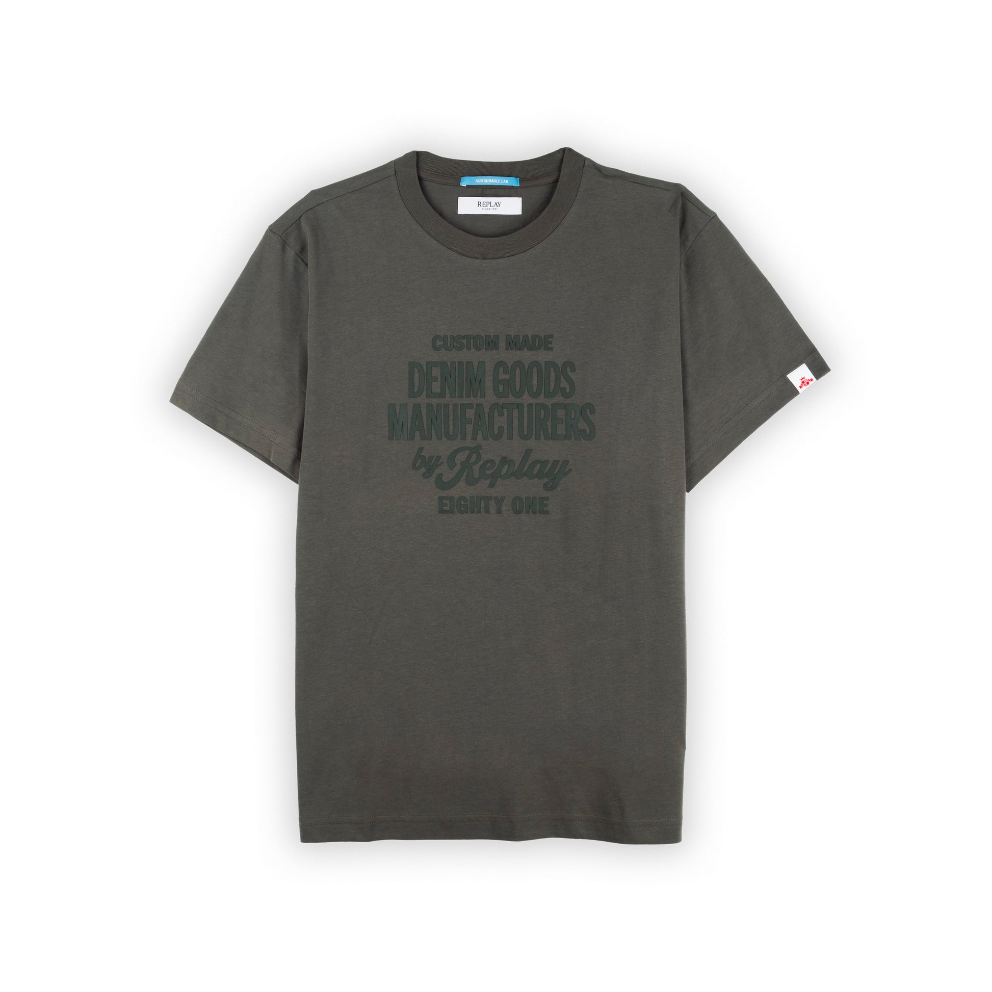 T-Shirt Homem Replay Verde Militar com Estampa Frontal